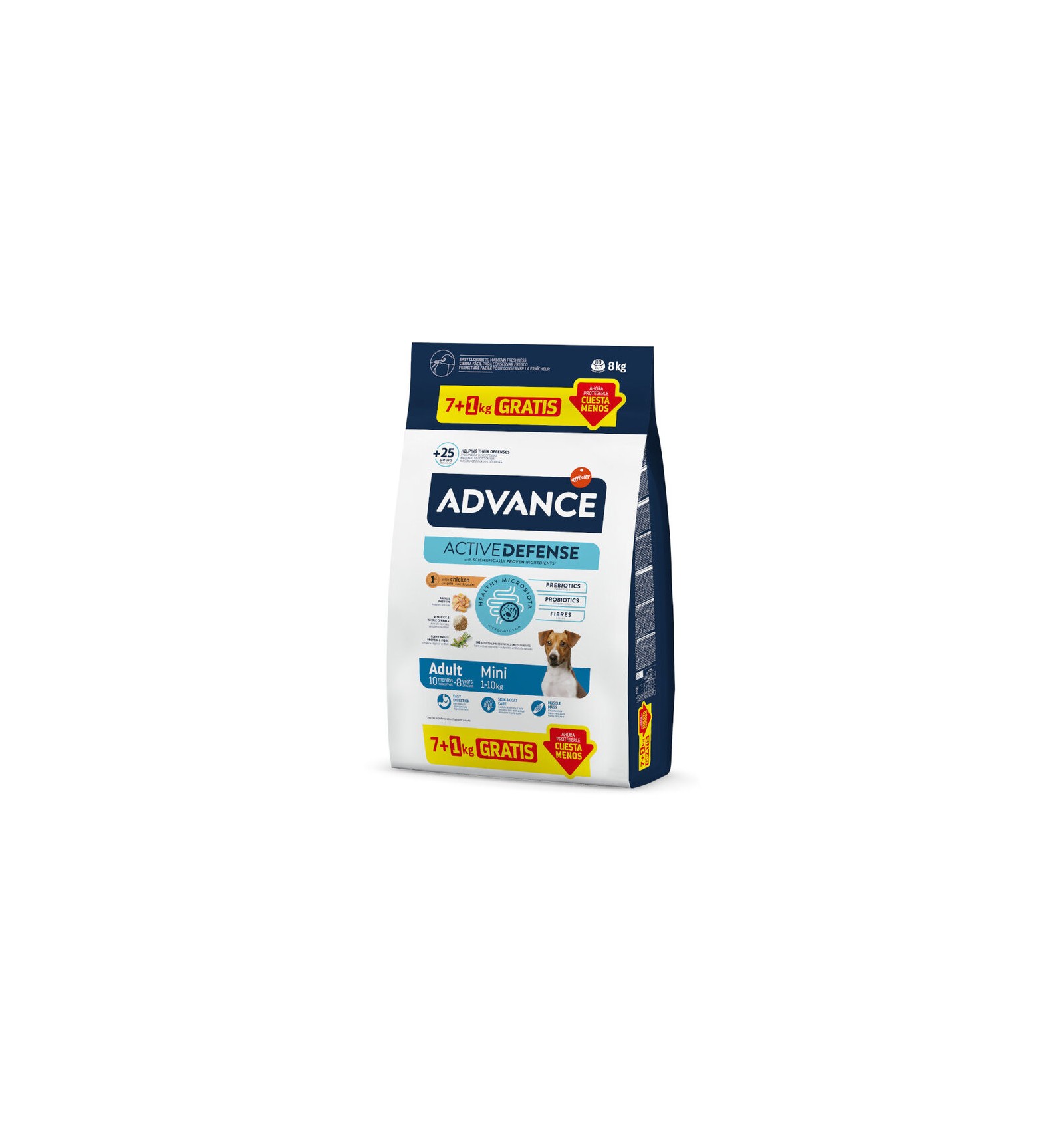 Advance Adult Mini é um alimento de alta qualidade, fácil de digerir e formulado para responder às necessidades dos cães adultos de pequeno porte. É elaborado com frango como primeiro ingrediente.