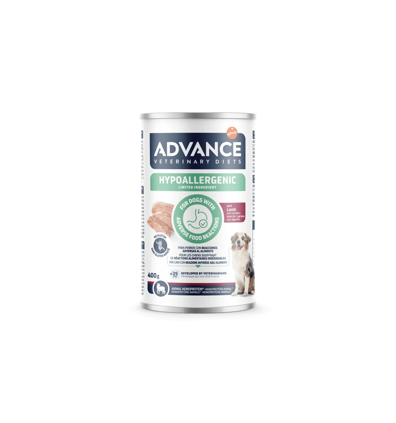 O ADVANCE VETERINARY DIETS LIMITED INGREDIENT CORDEIRO é um alimento dietético húmido completo e equilibrado, formulado para cães de todos os tamanhos com reações adversas ao alimento.