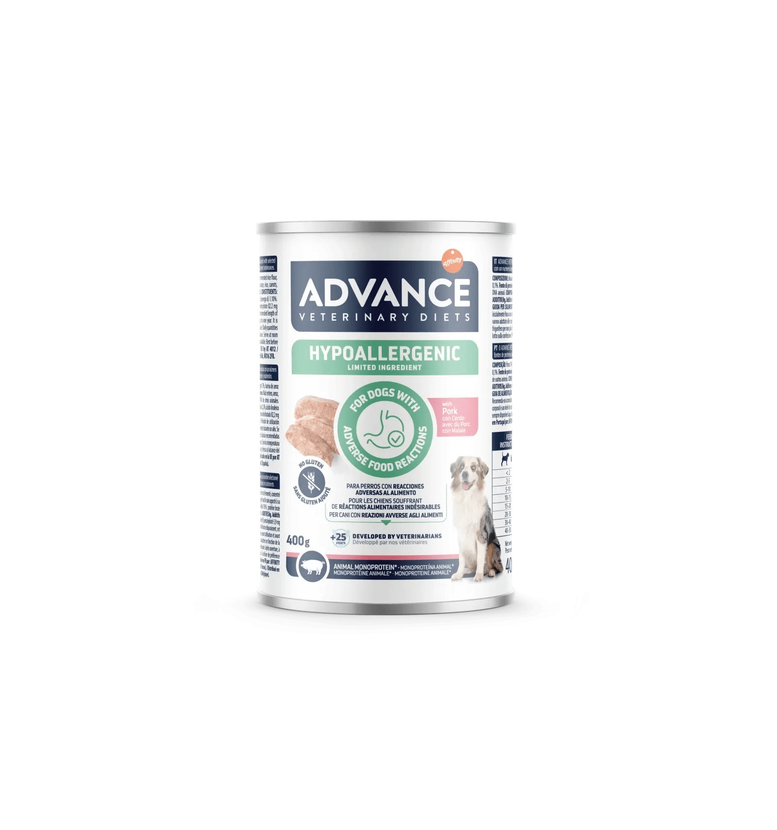 O ADVANCE VETERINARY DIETS LIMITED INGREDIENT PORCO é um alimento dietético húmido completo e equilibrado, formulado para cães de todos os tamanhos com reações adversas ao alimento.