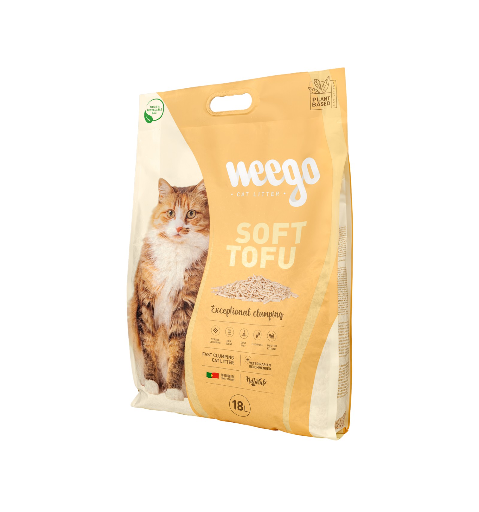Weego® Charcoal e Soft Tofu são areias aglomerantes de alta qualidade feita de tofu natural e biodegradável. Oferece controlo superior de odores, alta absorção e é 99% livre de pó, ideal para gatos alérgicos. O equilibrio perfeito entre desempenho, conforto e responsabilidade ambiental,
