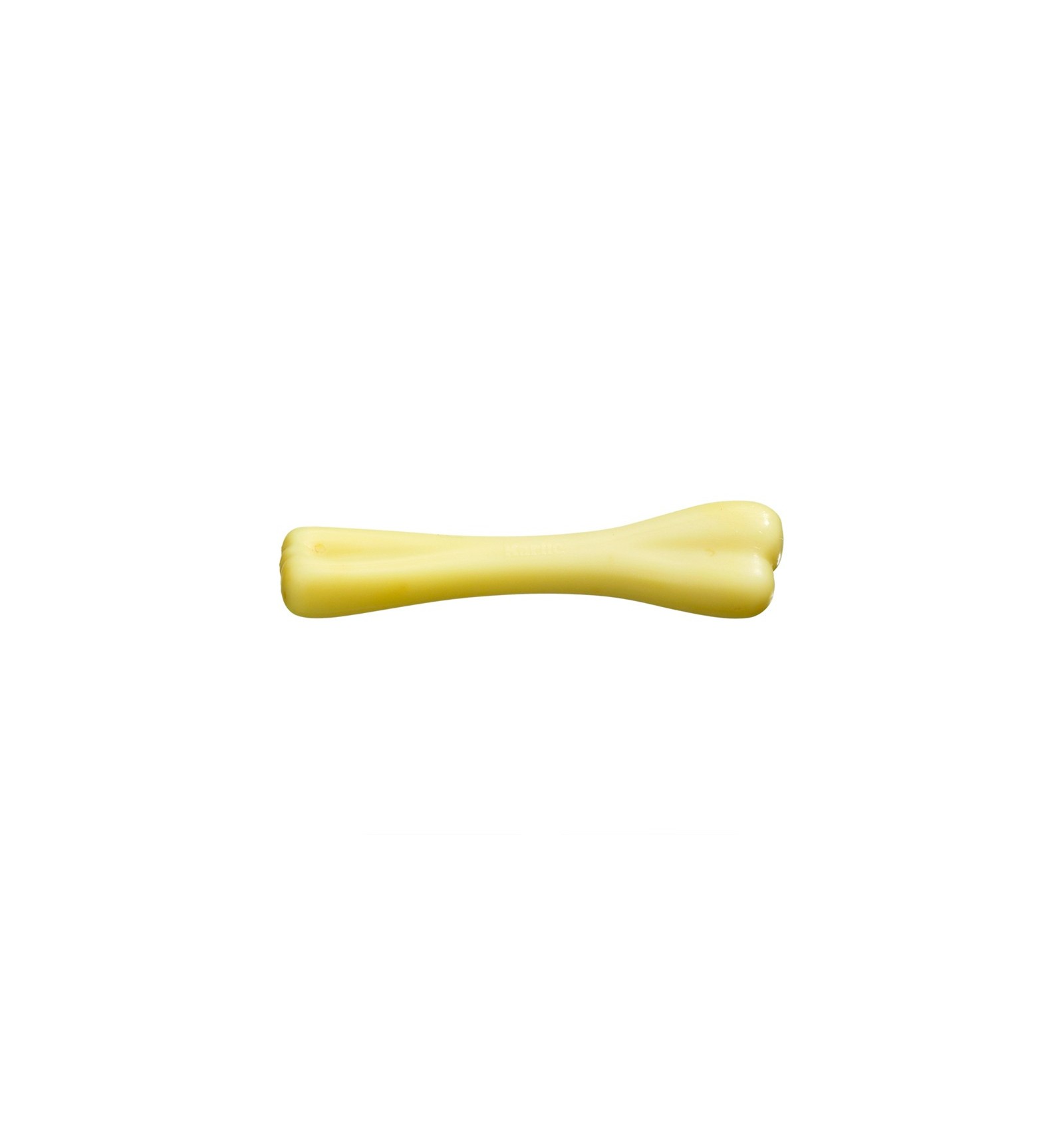Brinquedo em forma de osso feito em nylon muito duro e resistente com odor a baunilha. Com este brinquedo o seu cão passará horas e horas mordendo-o ou lambendo-o, ao mesmo tempo que fortalece a musculatura da mandíbula e previne a acumulação de sarro nos dentes e o mau cheiro.