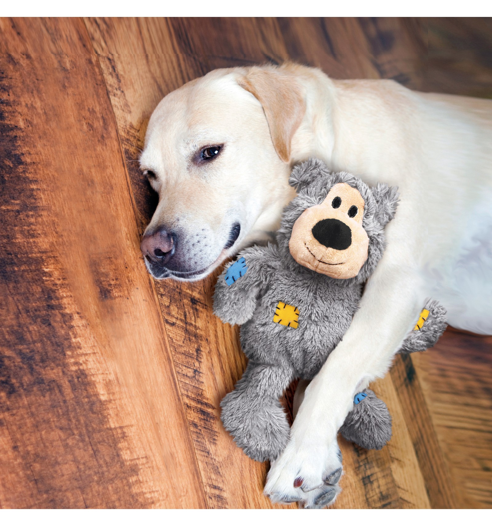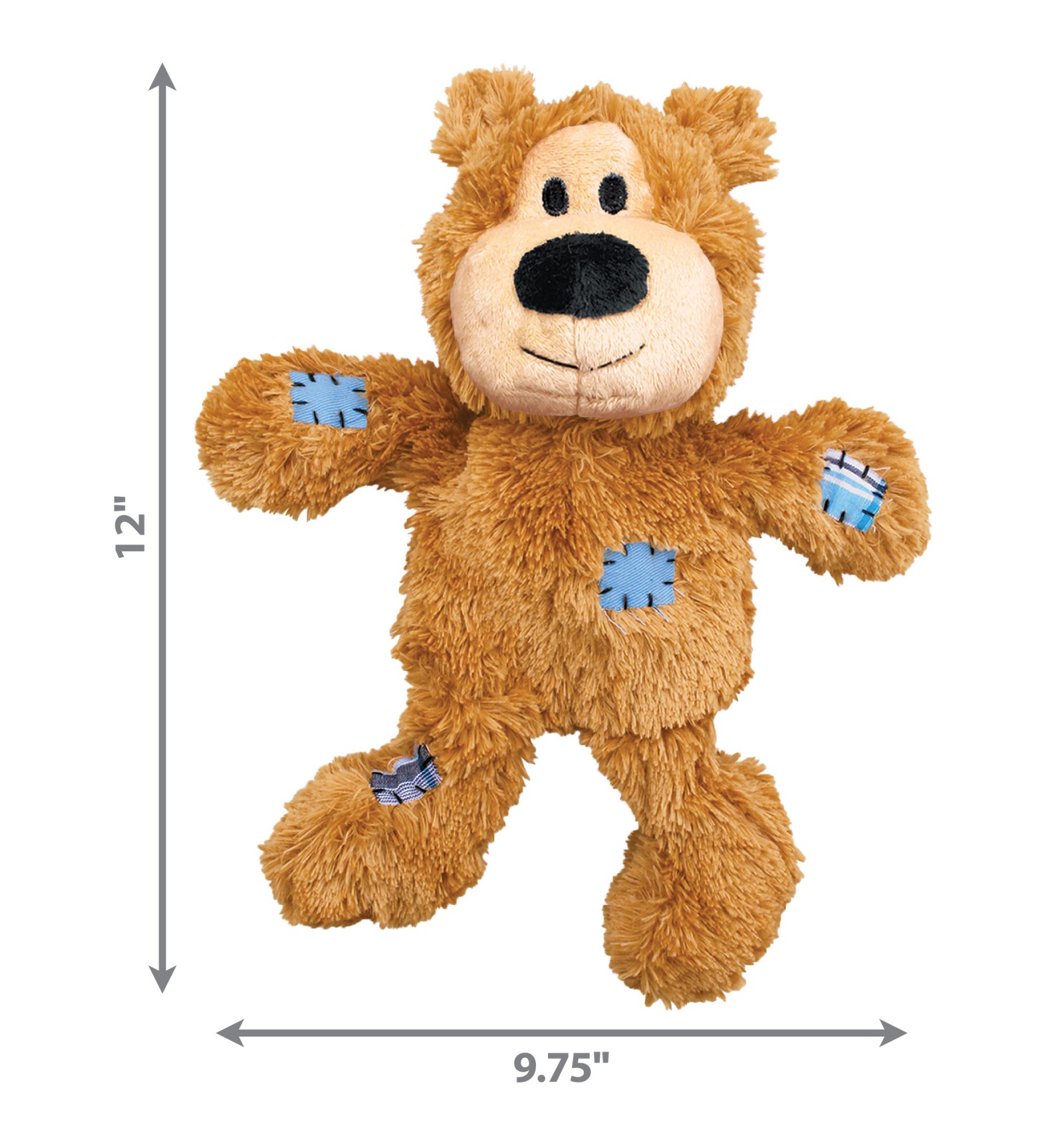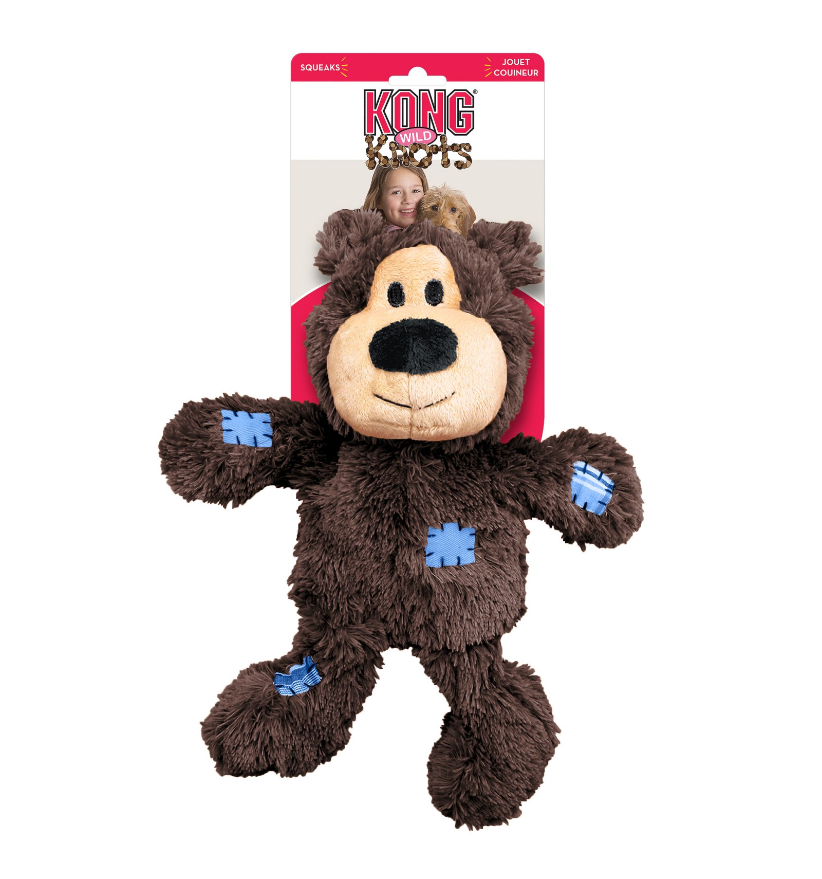 O KONG Wild Knots Urso é macio e fofo por fora, mas durável e forte por dentro, graças a um esqueleto de corda que satisfaz os instintos naturais dos cães. Apitos e estes prolongam a brincadeira, enquanto o enchimento mínimo gera menos sujeira. O corpo de travesseiro é ótimo para aconchegar-se no sofá.