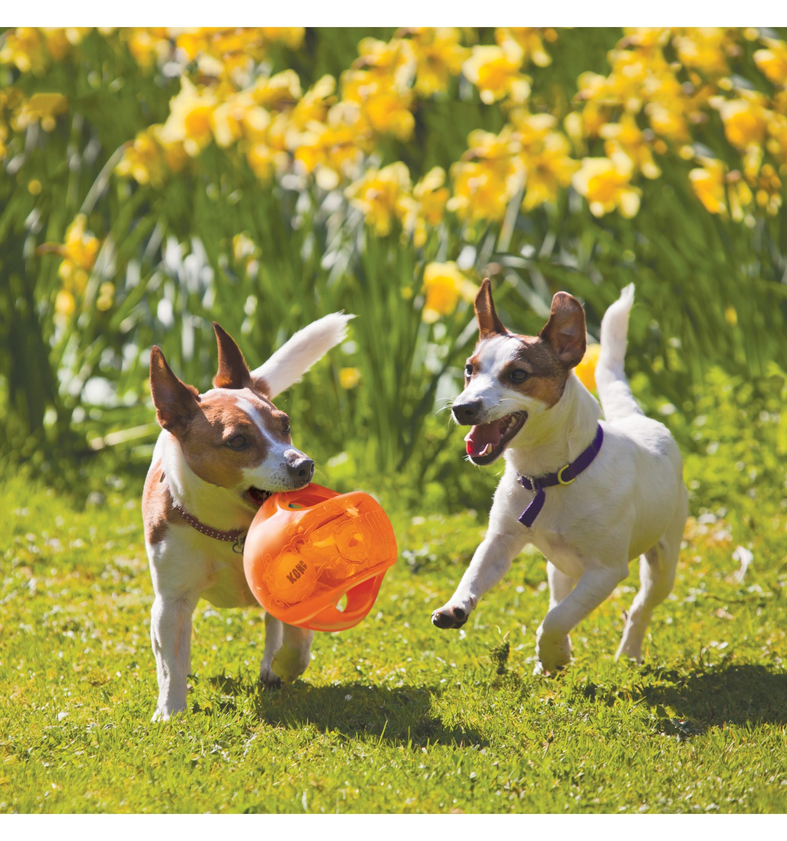 Kong Jumbler bola, um brinquedo 2 em 1 para o dobro da diversão.