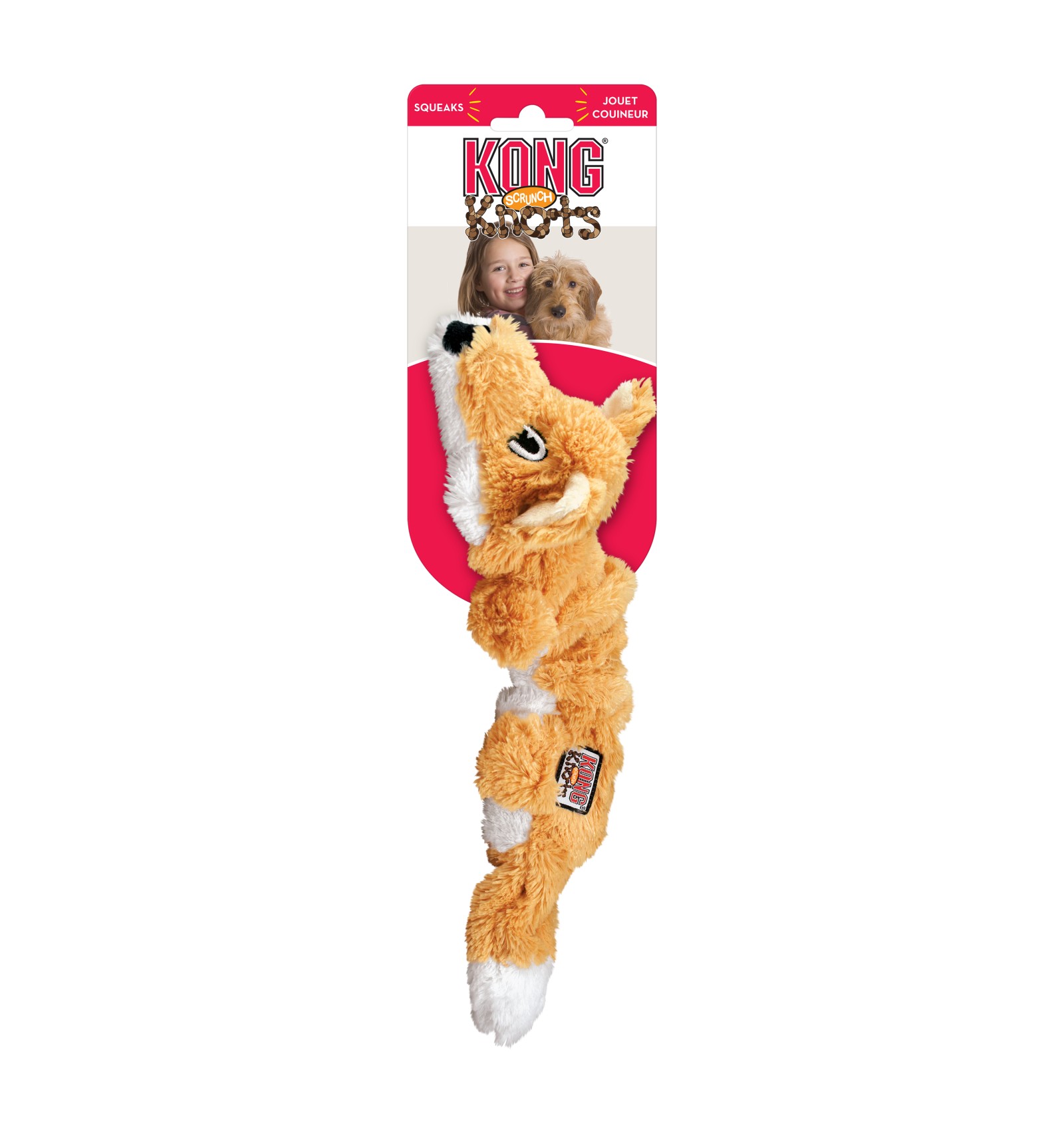 Os KONG Scrunch Knots são brinquedos realistas que mantêm os cães querendo mais. O material de pelúcia envolve uma corda enrolada interna, enquanto os lados elásticos criam movimento natural para estimular a brincadeira. Os nossos internos satisfazem os instintos naturais e estes brinquedos não contêm enchimento, para evitar sujeira. Faz barulho e proporciona maior diversão!