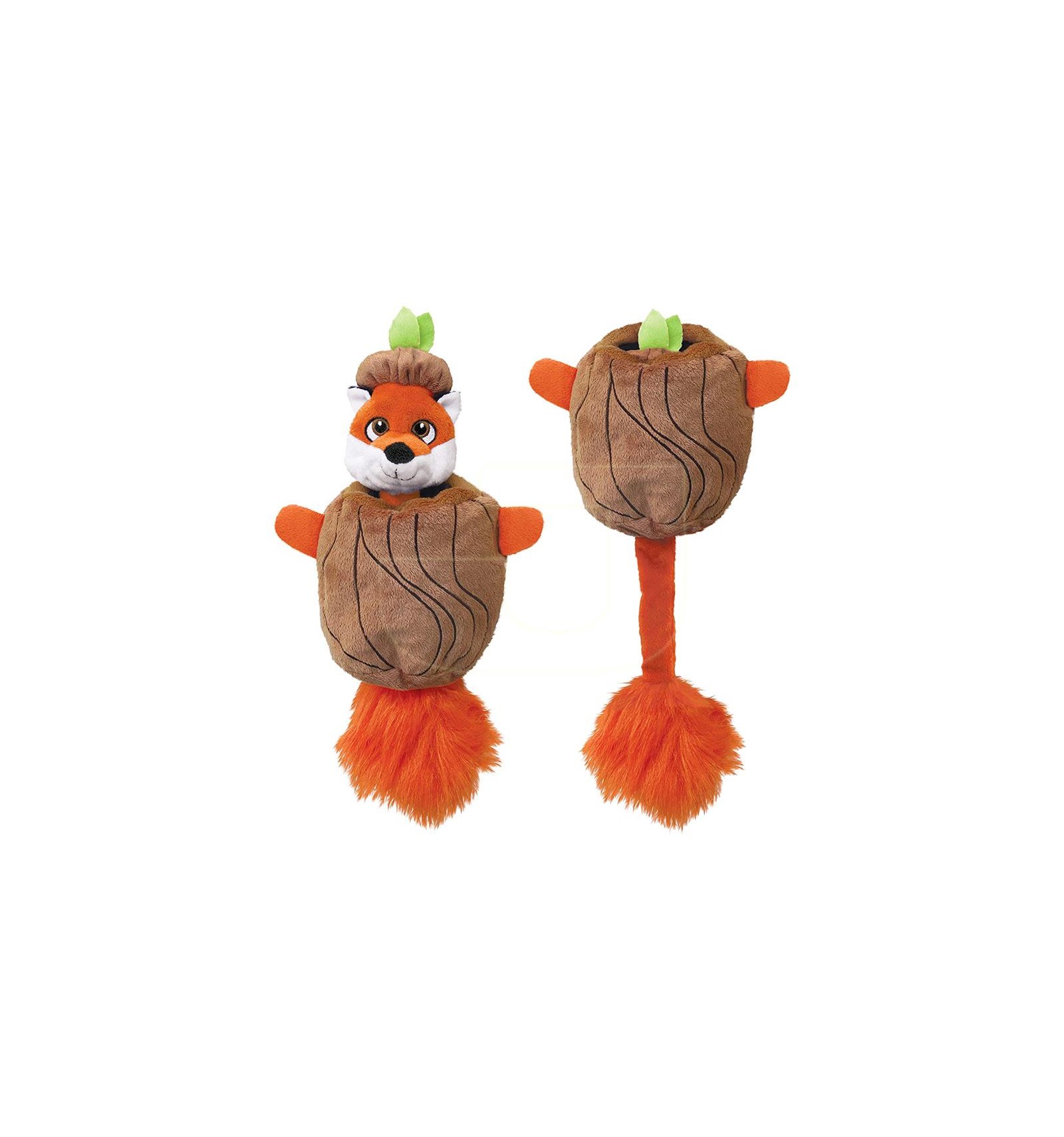 Peluche Elástico Kong Puzzlelements , com cores vivas e um divertido design em forma de animal ( raposa ou passarinho ).
