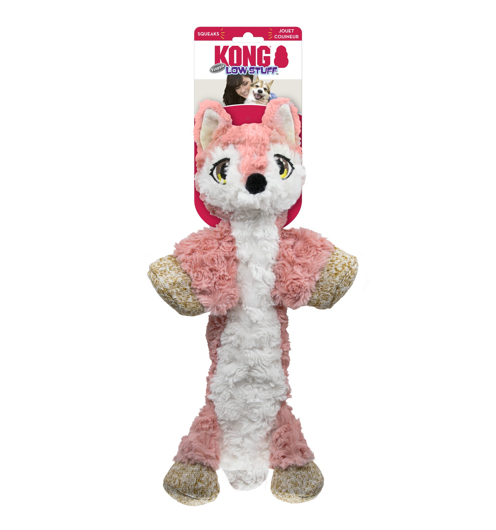 KONG Low Stuff Flopzie Fox tem um corpo longo e uma base pesada que convida a agitar e sacudir enquanto recompensa os instintos naturais de um cão.