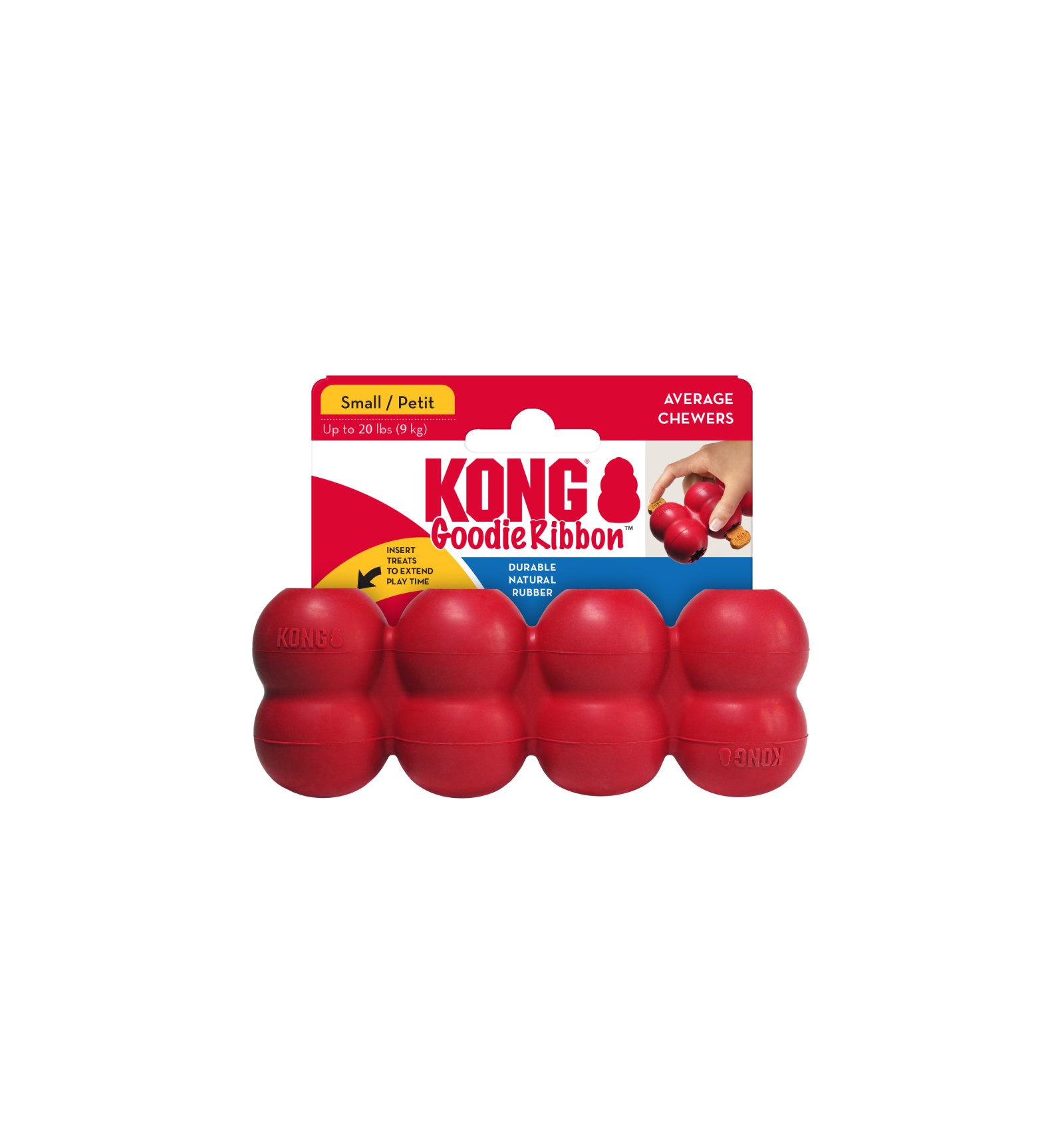 Feito com a fórmula de borracha vermelha, totalmente natural e exclusiva do KONG Classic, este osso apresenta os Goodie Grippers™ patenteados, que transformam este divertido brinquedo em um agradável desafio de distribuição, que pode ser recheado com o petisco favorito do seu cão.
