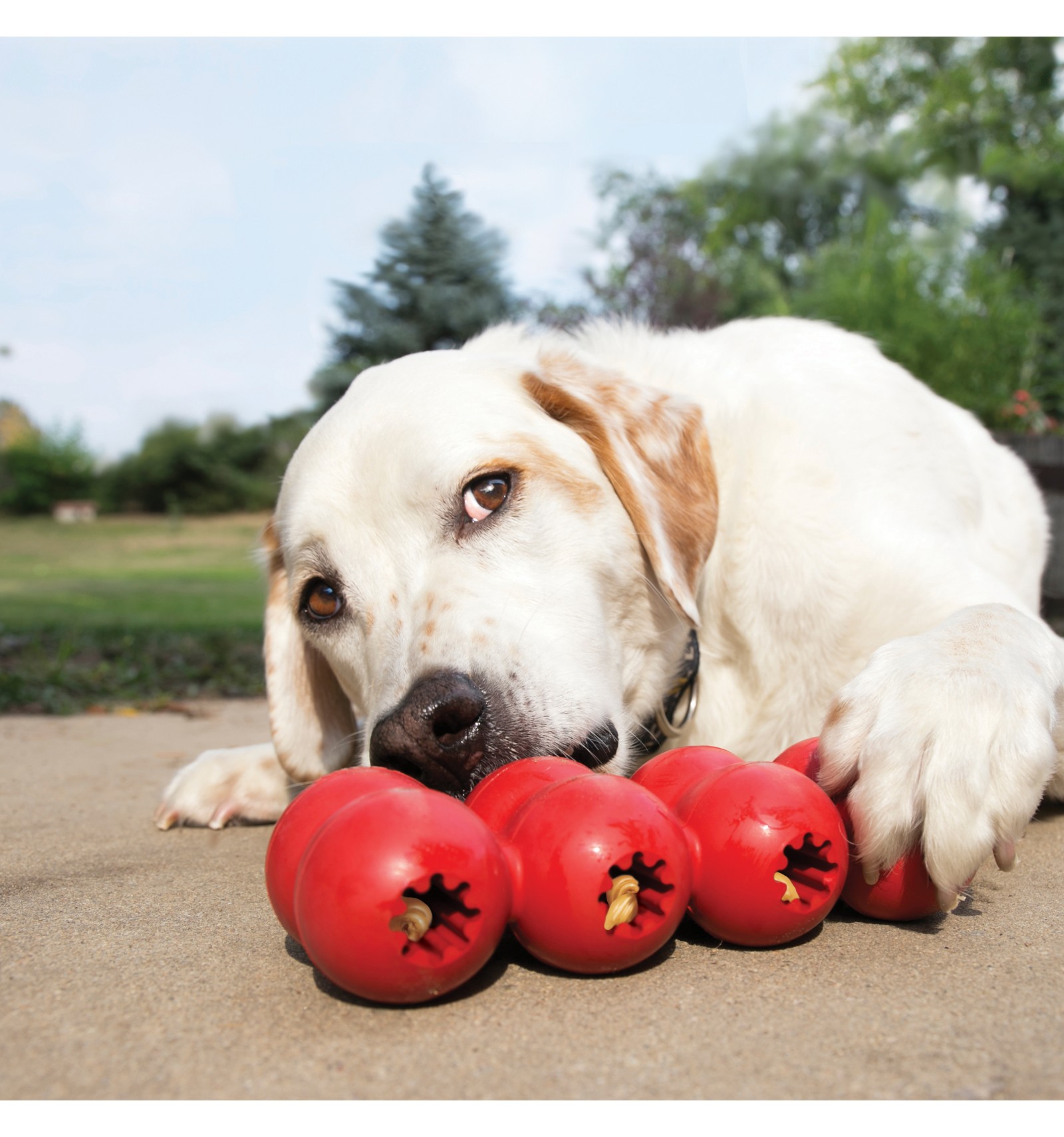 Quer estender a sessão de mastigação? Recheie com KONG Snacks™ e atraia com um pouco de KONG Easy Treat™.