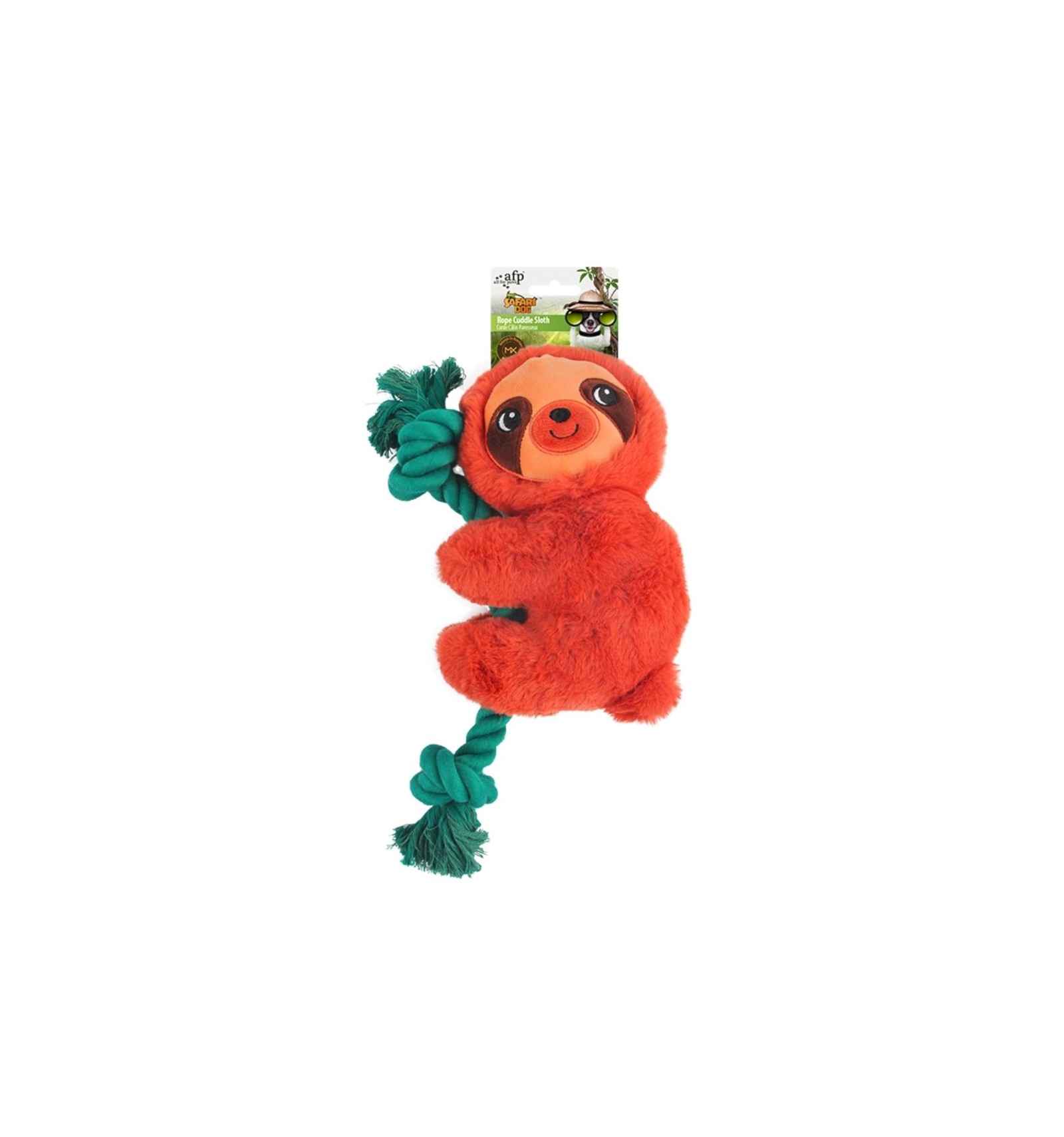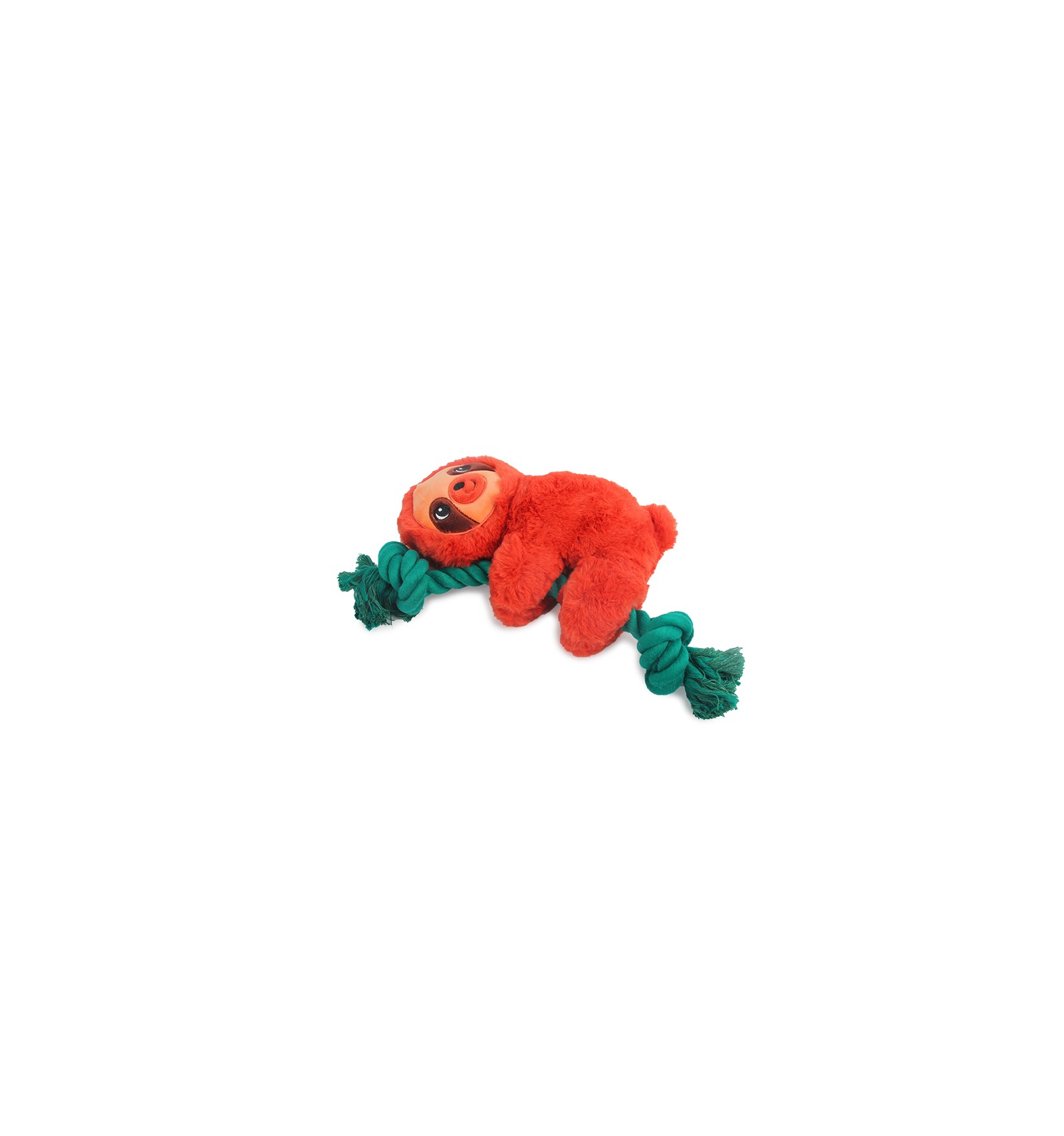 Brinquedo de peluche em forma de preguiça para cães com corda nos membros.