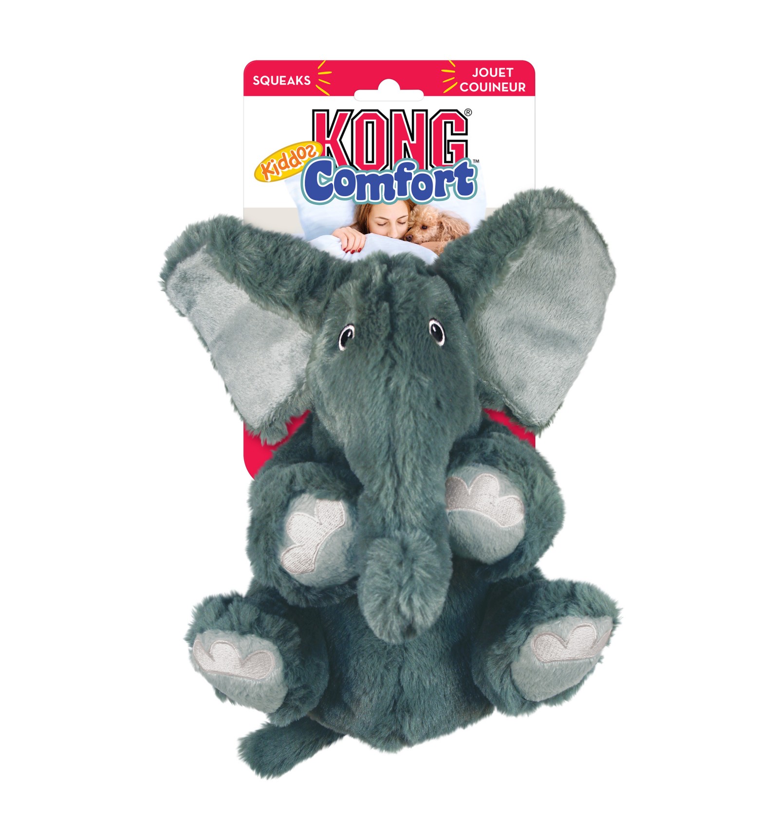 Peluche Kong Comfort Kiddos Elefante com som e um divertido design em forma de animal (elefante).