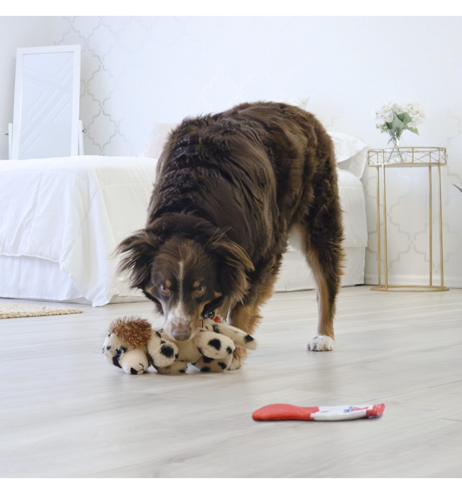 O Pêlo supermacio e os corpos flexíveis dos KONG Comfort Pups são brinquedos ideais para cães que adoram "chuchar". Além disso, os cães podem brincar com a etiqueta que possui um som crepilitante e é felpuda! O apito e orelhas crepilitantes despertam instintos e mantêm os cães motivados enquanto o corpo flexível torna o abanar ainda mais satisfatório - com menos enchimento para menos bagunça.
