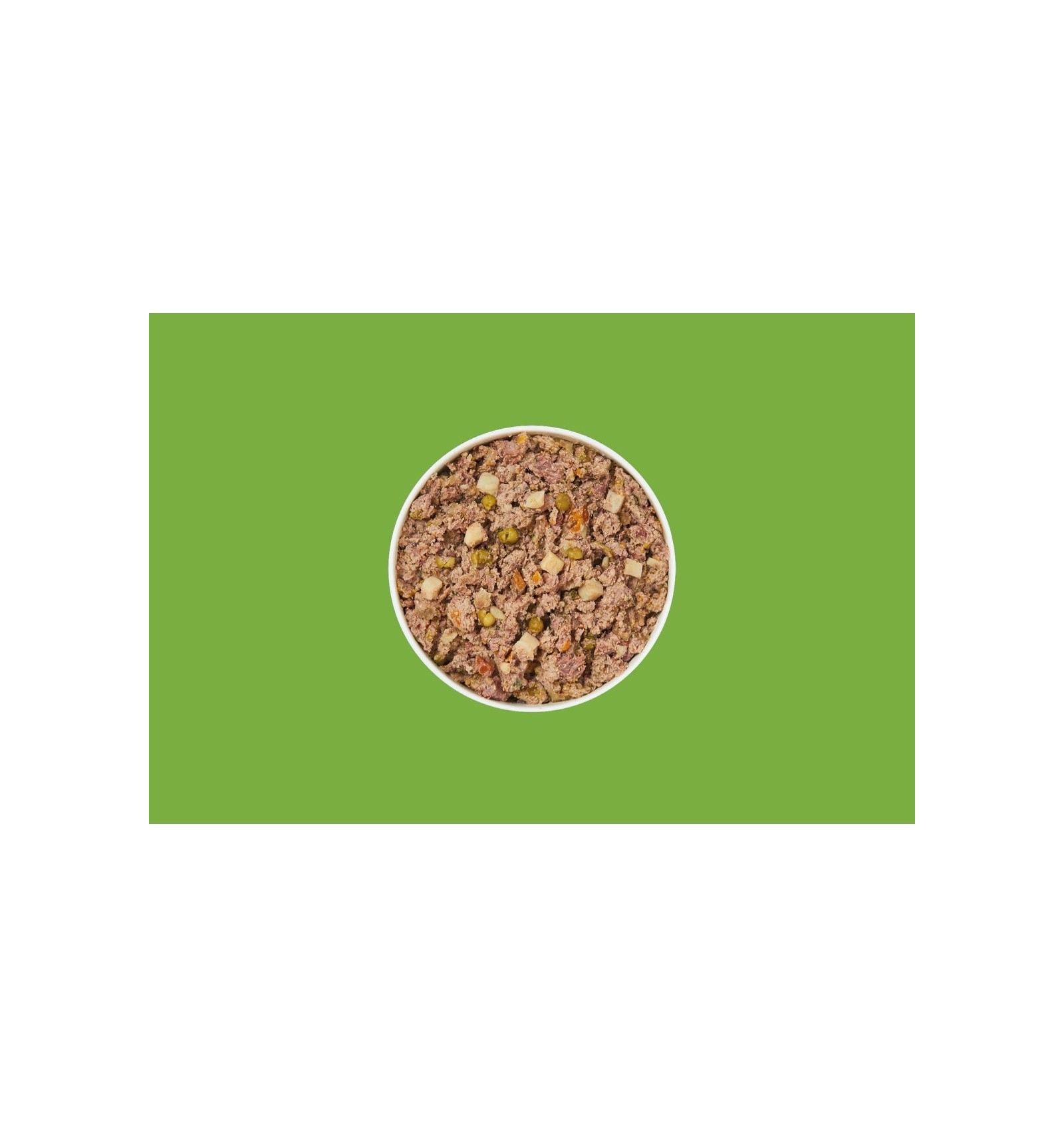 60% Preparados frescos: Peru (30%), Salmão (15%), Arenque (15%); Batatas (4%), Ervilhas (4%), Cenouras, Espinafres, Substâncias minerais, Óleo de cânhamo.