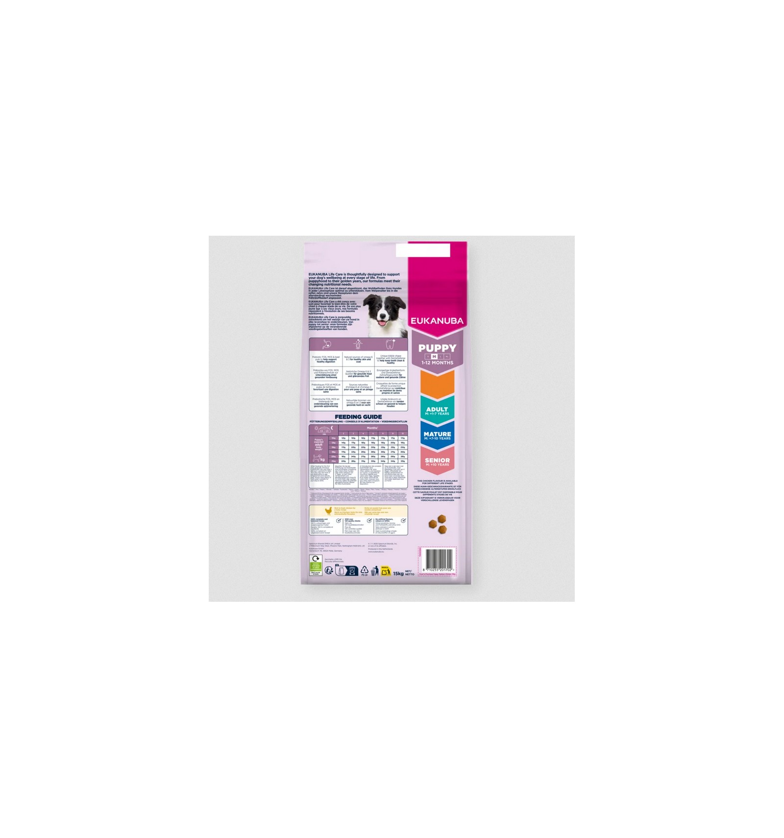 Este alimento seco fornece nutrição avançada para filhotes de raça média, apoiando a condição corporal ideal e o bem-estar ao longo da vida. Confie na EUKANUBA para nutrir a base do seu filhote para uma vida feliz e saudável.