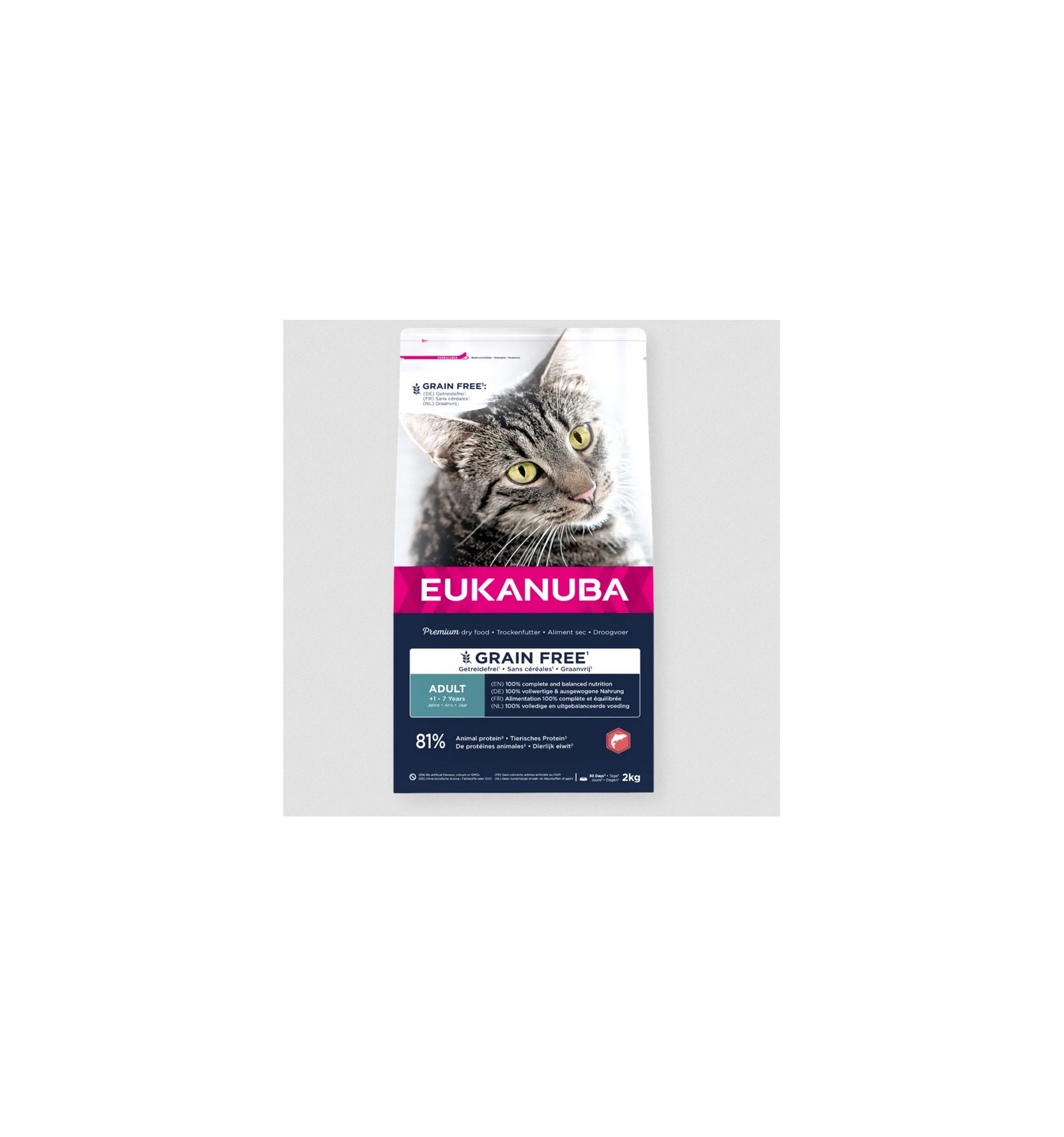Nosso alimento de gato seco EUKANUBA Grain Free* para gatos adultos oferece uma alternativa para gatos com necessidades nutricionais especiais.