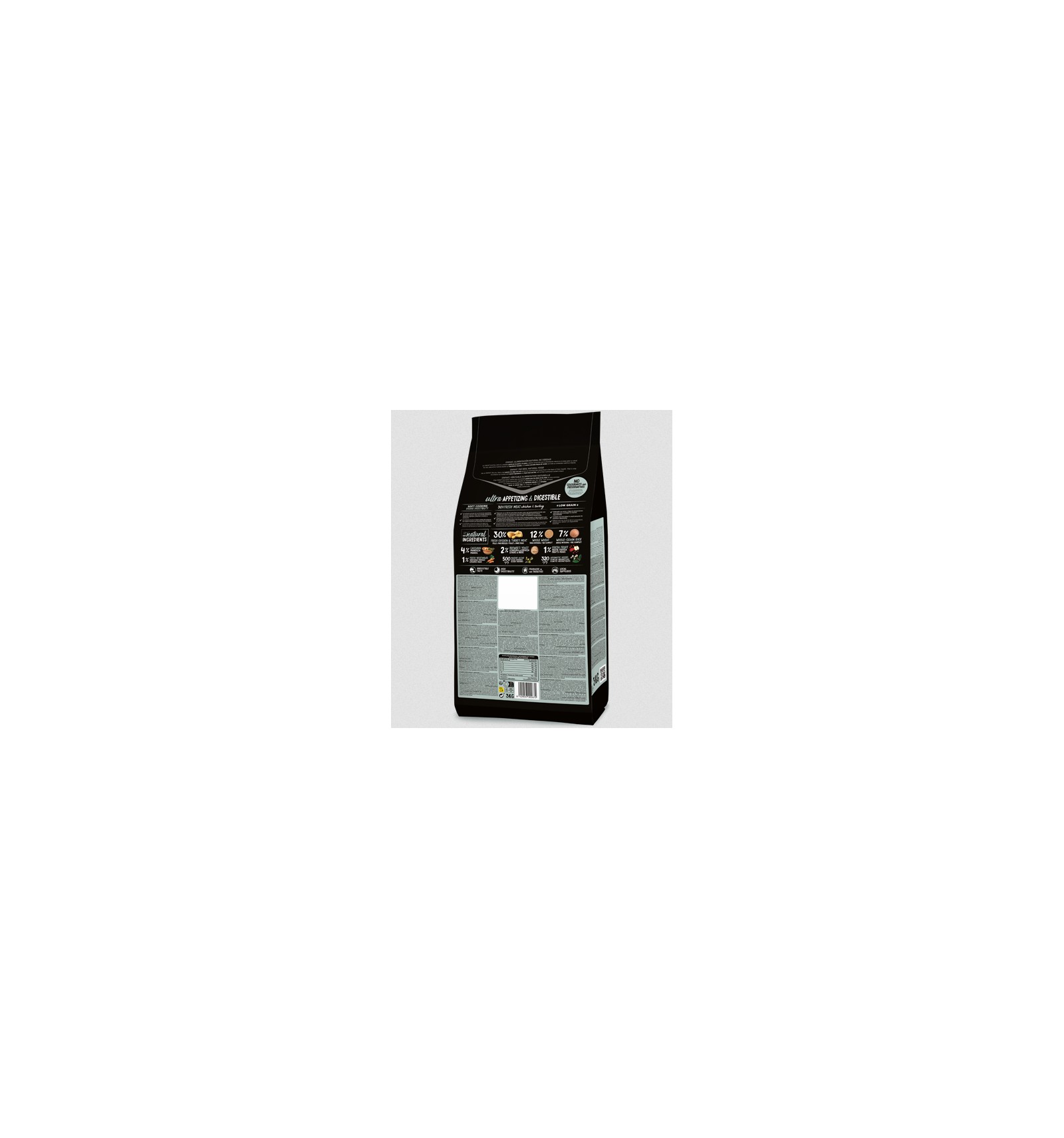 Frango fresco* (15 % min. antes de cozinhar), peru fresco* (15 % min. antes de cozinhar), trigo* (12 %), frango desidratado (10 %), gordura avícola (preservada com antioxidantes naturais), hidrolisado de salmão (8 %), arroz* (7 %), proteína de trigo, raízes de mandioca* (4 %), porco desidratado (3 %), proteínas de milho, legumes e frutas frescas antes da cozinhar (maçã* 1 %, cenoura* 0,5 %, brócolos* 0,5 %), levedura de cerveja* (2 %), salmão desidratado (2 %), proteína hidrolisada de frango, lenhinocelulose, óleo de salmão (preservado com antioxidantes naturais), polpa de beterraba, sal-gema*, alfalfa desidratada*, raízes de chicória (FOS)*, produtos de leveduras (MOS), algas marinhas desidratadas* (500 mg/kg), glucosamina (500 mg/kg), yucca shidigera, sulfato de condroitina (100 mg/kg), arandos* (100 mg/kg), chá verde* (80 mg/kg), equinácea* (80 mg/kg), flor de camomila* (80 mg/kg), funcho* (80 mg/kg). *INGREDIENTES NATURAIS