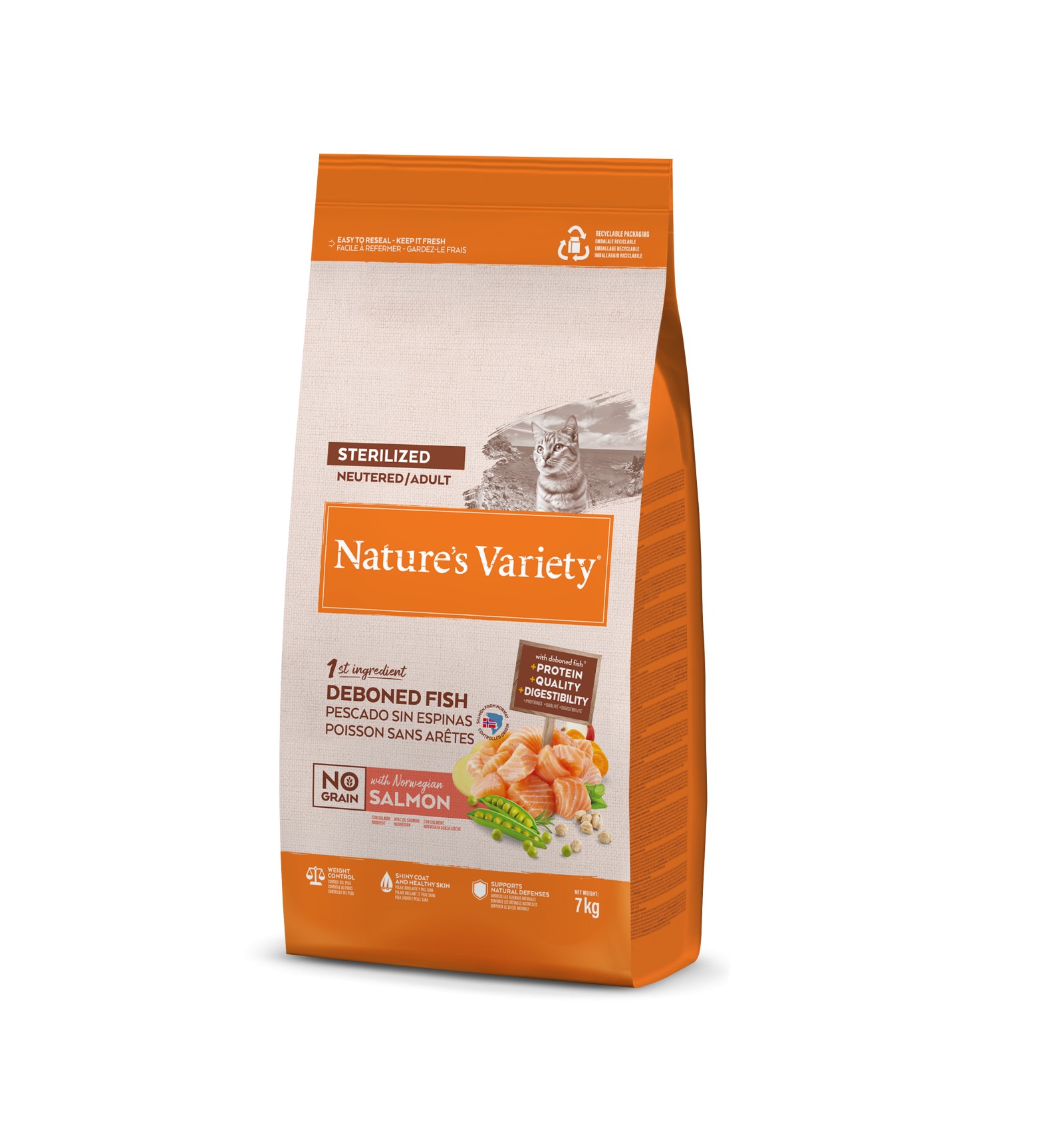 ComposiçãoCarne de salmão da Noruega sem espinhas* (30%), ervilhas desidratadas* (12%), proteína desidratada de atum (11%), amido de ervilha*, grão-de-bico desidratado* (6%), proteína de batata, proteína de ervilha*, proteína desidratada de salmão (5%), batata desidratada* (4%), proteínas animais hidrolisadas (aves de capoeira, porco, peixe) (3%), gordura de aves de capoeira* (2%), fibra de ervilha*, celulose em pó, polpa de beterraba*, cenoura desidratada* (0,5%, equivalente a 4% de cenoura fresca), substâncias minerais, maçã desidratada* (0,3%, equivalente a 2% maçã fresca), algas marinhas desidratadas (kelp)* (0,01%), alecrim desidratado* (0,01%). *Ingredientes naturais