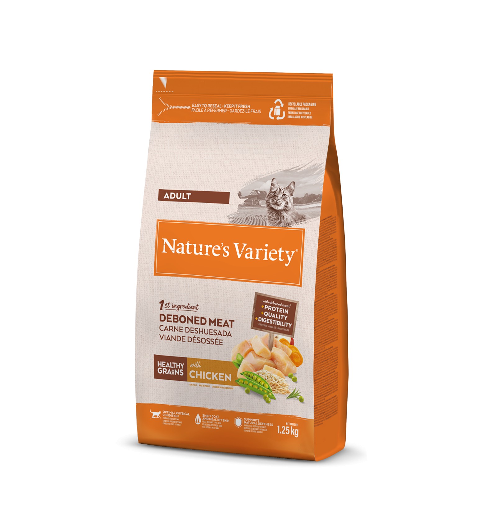 ComposiçãoCarne de frango desossada* (20%), proteína desidratada de frango (19%), ervilhas desidratadas* (13%), proteína de milho, arroz integral* (9%), aveia* (6%), gordura de aves de capoeira* (5%), proteínas animais hidrolisadas (aves de capoeira, porco, peixe) (3%), polpa de beterraba*, substâncias minerais, proteína desidratada de peru (1%), cenoura desidratada* (0,5%, equivalente a 4% de cenoura fresca), maçã desidratada* (0,3%, equivalente a 2% maçã fresca), algas marinhas desidratadas (kelp)* (0,01%), alecrim desidratado* (0,01%). *Ingredientes naturais