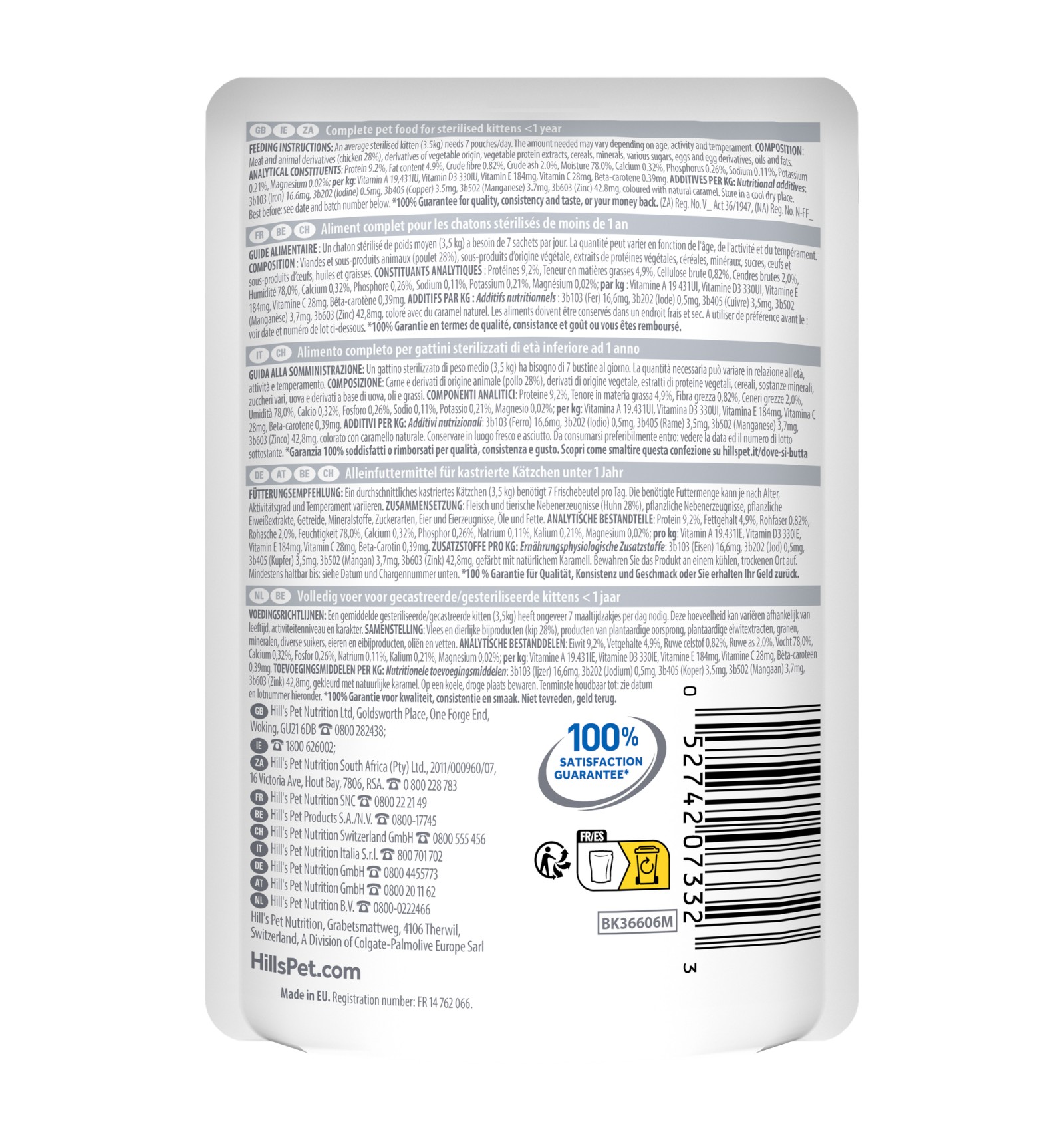 Hill's Science Plan Sterilised Kitten alimento húmido para gatinho com frango é um alimento completo para gatinhos esterilizados e gatas gestantes ou lactantes.