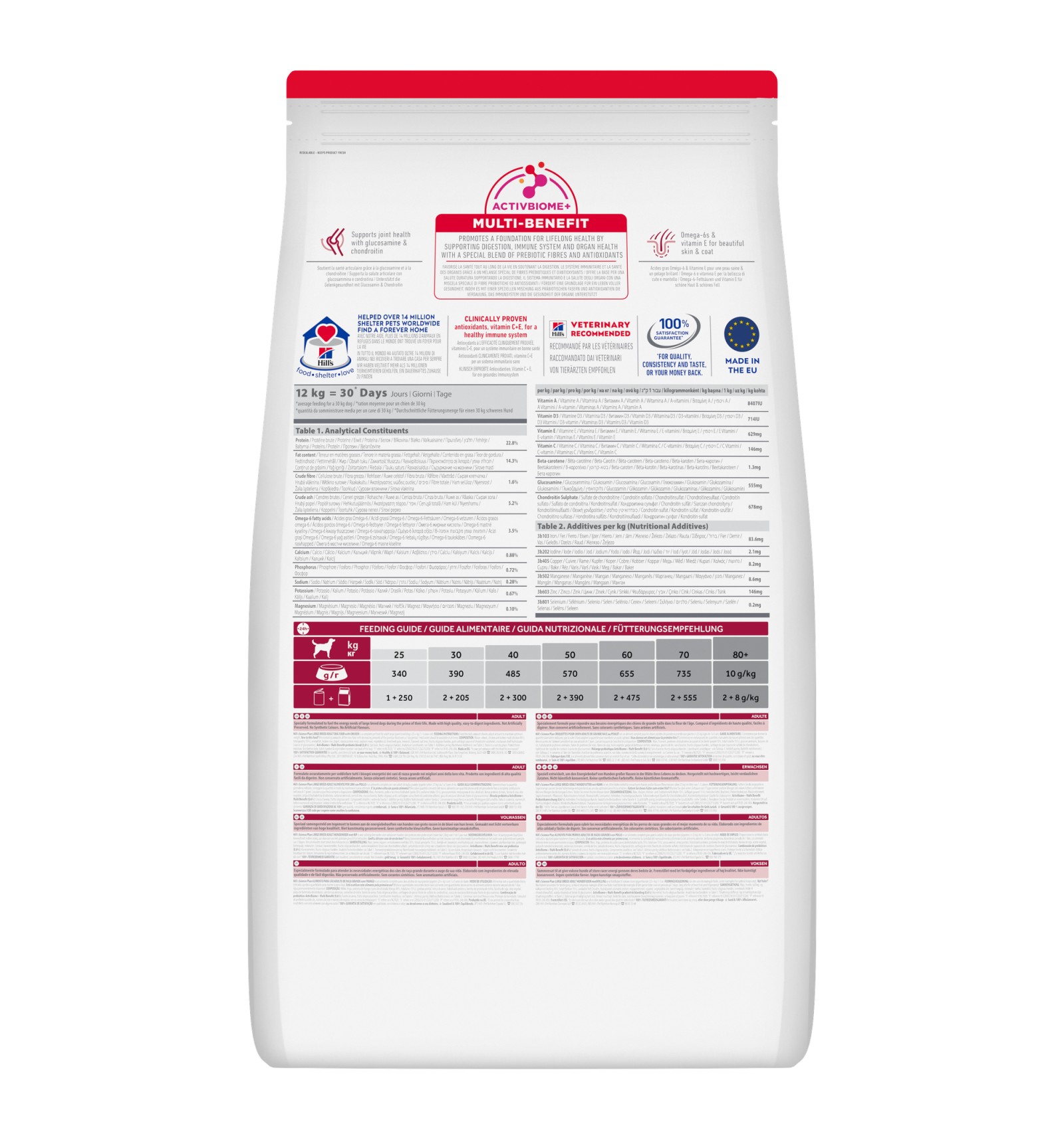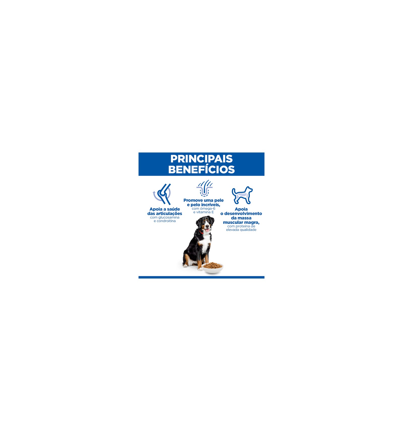 Hill's Science Plan alimento para cão adulto de raça grande com frango é um alimento completo especialmente formulado com a Tecnologia ActivBiome+ Multi-Benefit.