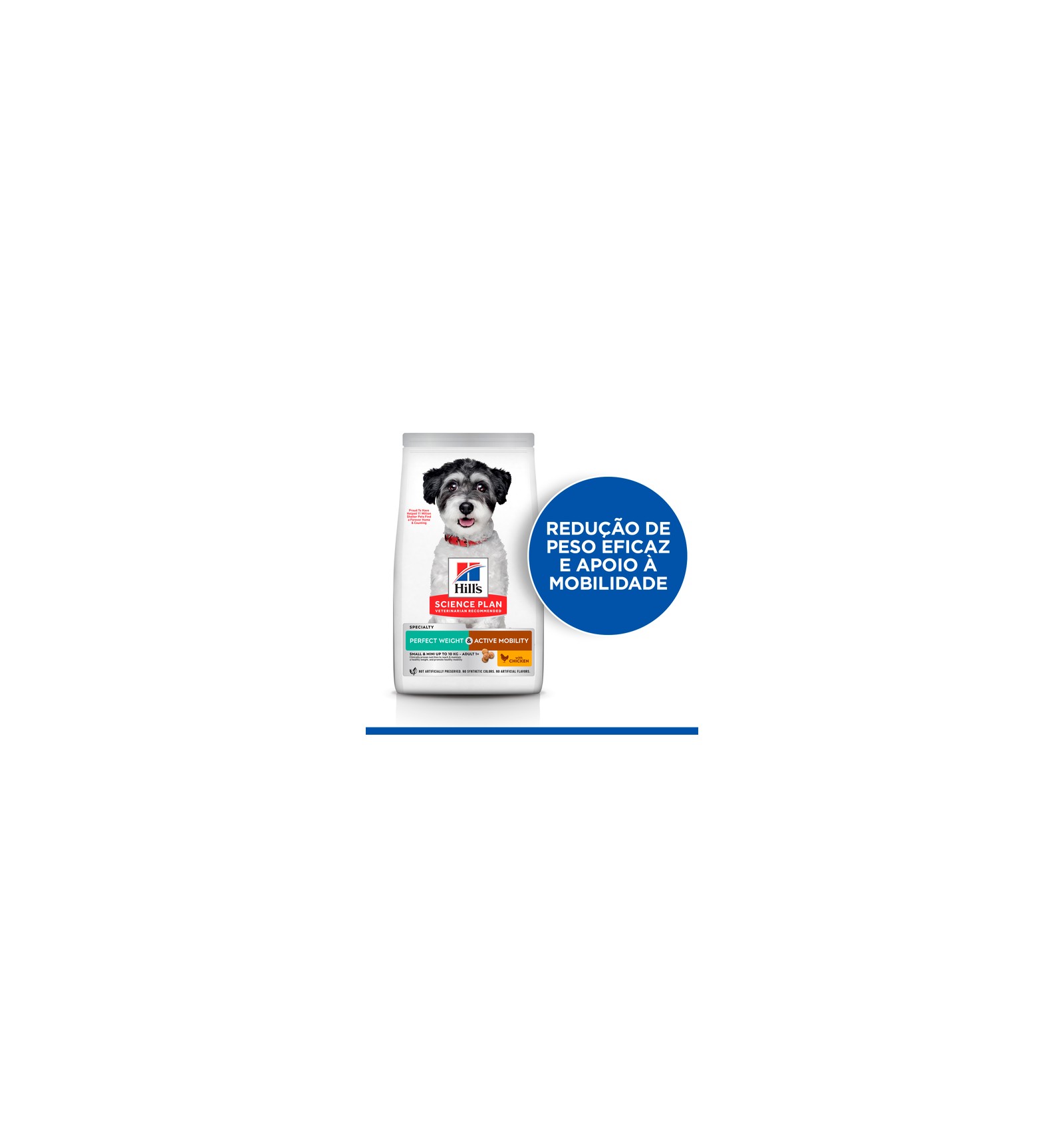 Alimento seco de frango para cão de raça pequena e mini para promover o controlo de peso e apoiar a saúde articular. Com proteína de elevada qualidade para ajudar a manter a massa muscular e óleo de peixe, rico em ácidos gordos ómega-3, para apoiar a mobilidade articular.