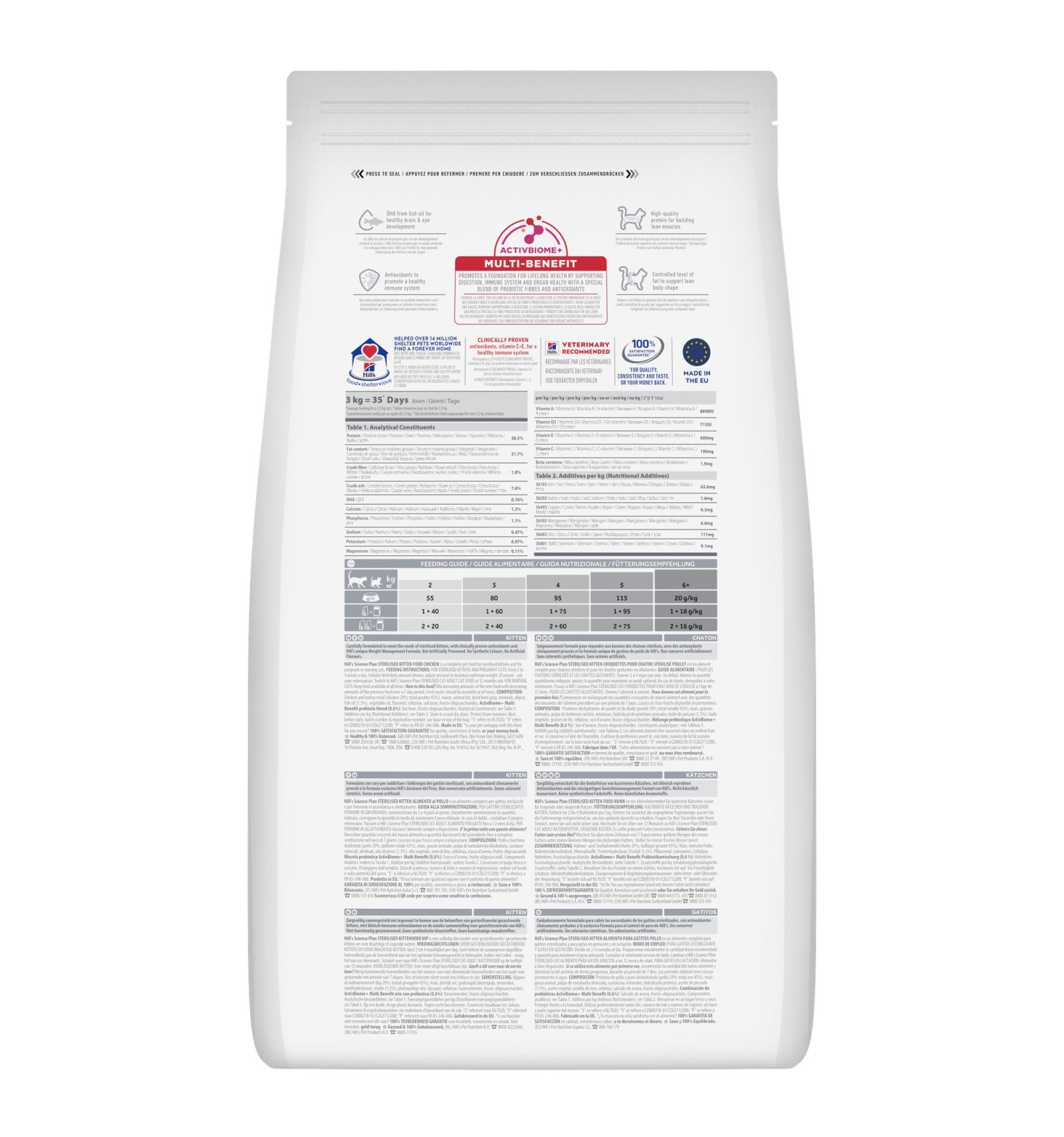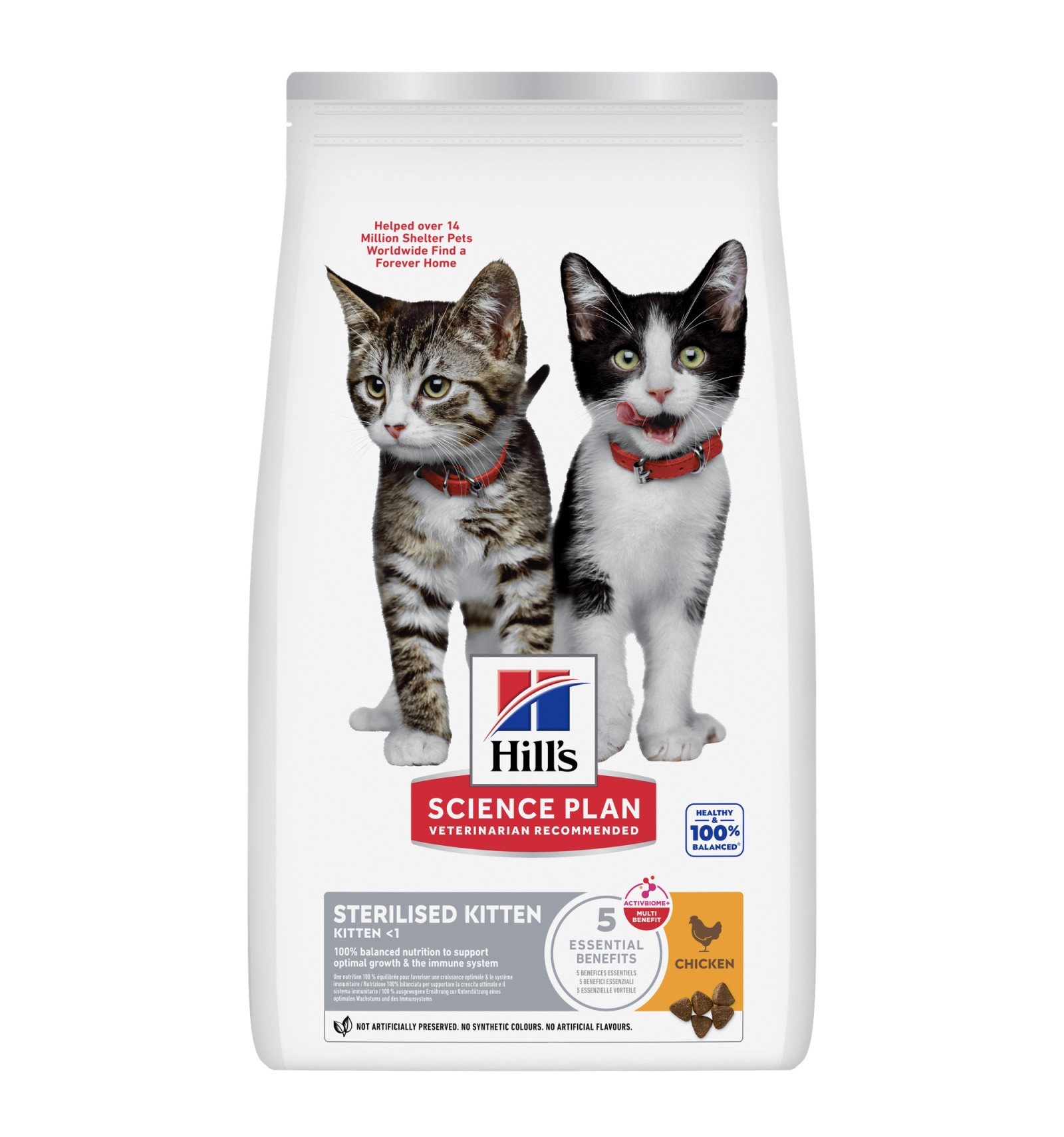 Hill's Science Plan Sterilised Kitten alimento para gatinho esterilizado com frango, especialmente formulado com Tecnologia ActivBiome+ Multi-Benefit. Este alimento é cuidadosamente formulado para satisfazer as necessidades dos gatinhos esterilizados, com antioxidantes clinicamente comprovados e com a Fórmula de Controlo de Peso exclusiva da Hill's.