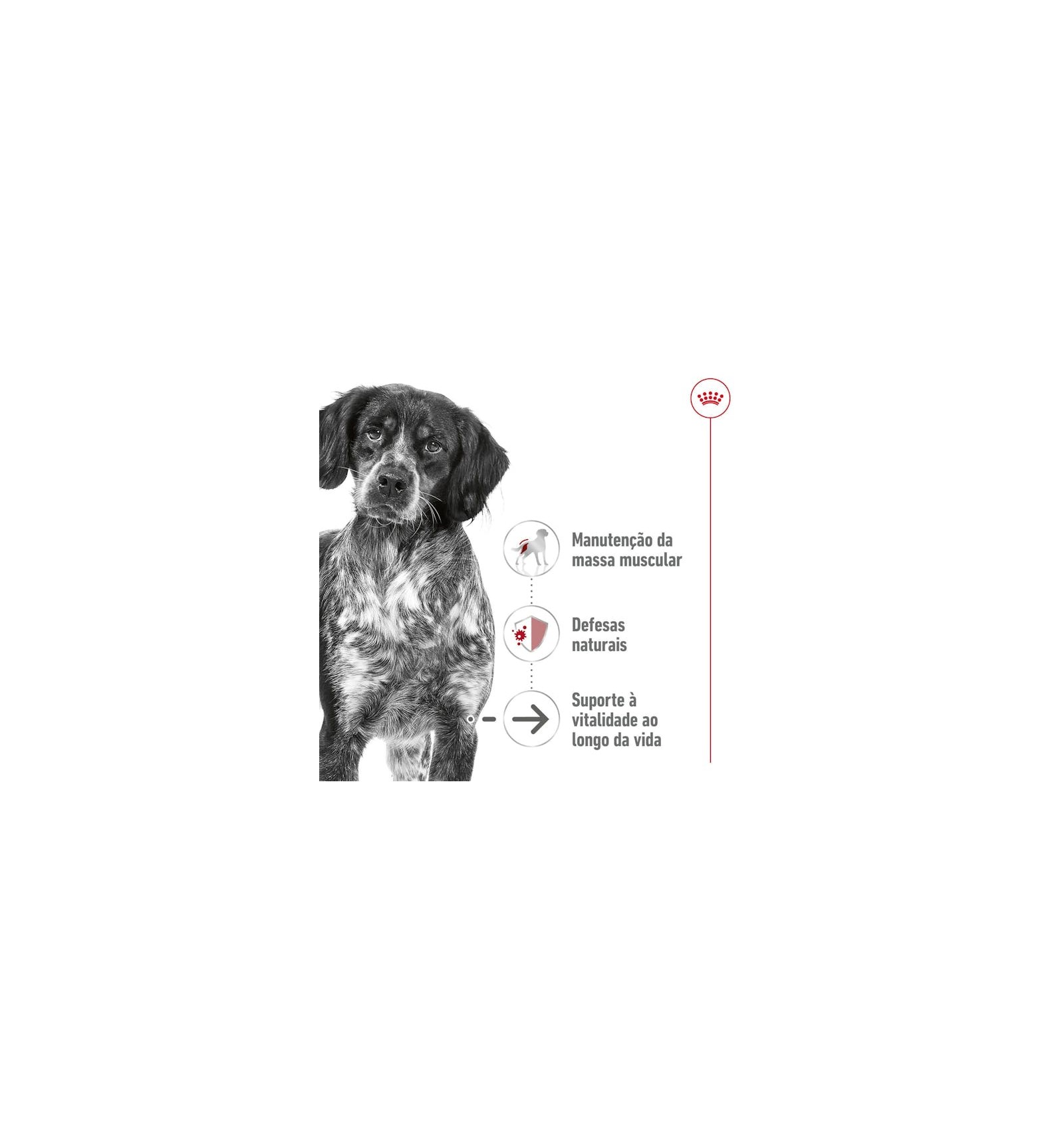 Este alimento destina-se aos cães de raças médias que pesam entre 11 e 25 kg e que têm mais de 7 anos.