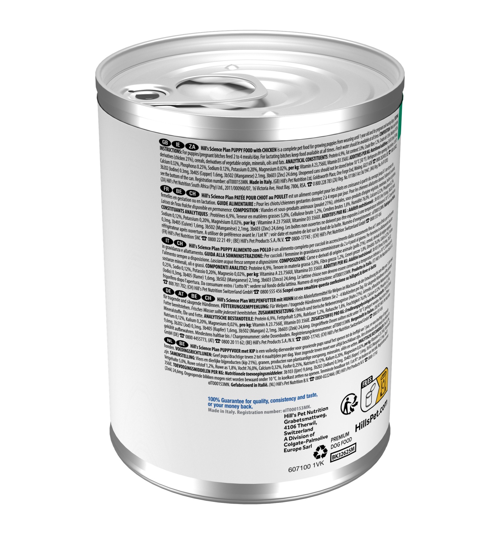 Uma vida longa e feliz, cheia de caudas a abanar — é isso que todos os cães merecem. Fornecemos-lhe uma nutrição saborosa para o ajudar a viver a vida ao máximo.Hill's Science Plan alimento húmido para cachorro com frango é um alimento completo para cachorros em crescimento, desde o desmame até 1 ano de idade, e para cadelas gestantes e lactantes. Equilibrado com precisão para fornecer a quantidade adequada de energia para suportar o peso corporal ideal em cachorros. Principais benefícios: