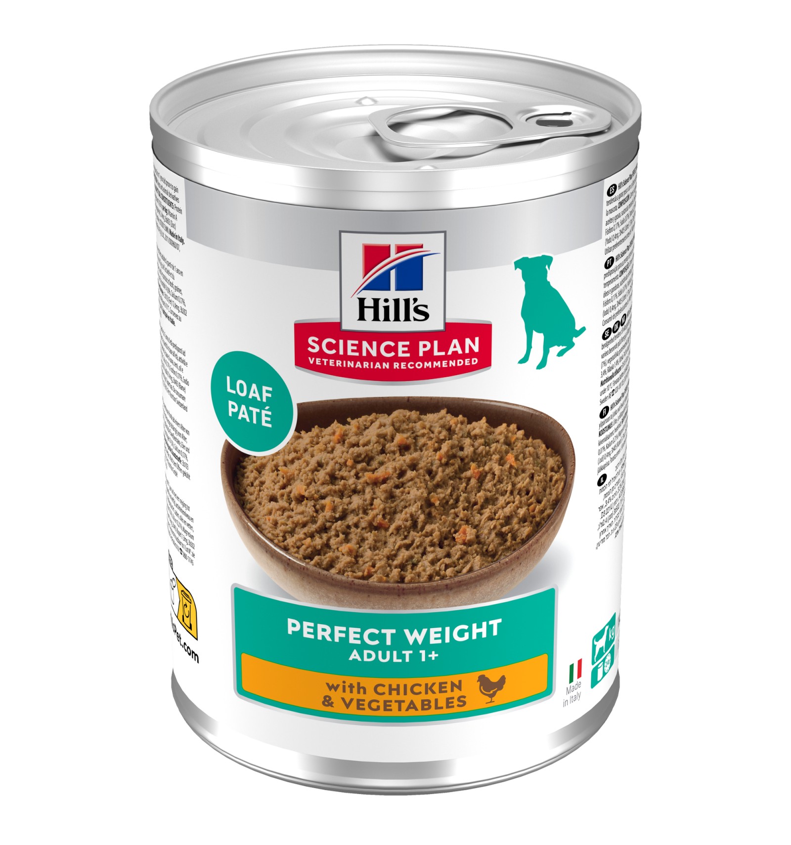 Uma vida longa e feliz, cheia de caudas a abanar — é isso que todos os cães merecem. Fornecemos-lhe uma nutrição saborosa para o ajudar a viver a vida ao máximo.Hill's Science Plan Perfect Weight alimento húmido para cão adulto com frango e vegetais proporciona uma deliciosa nutrição inovadora para controlo de peso com uma tecnologia clinicamente comprovada: