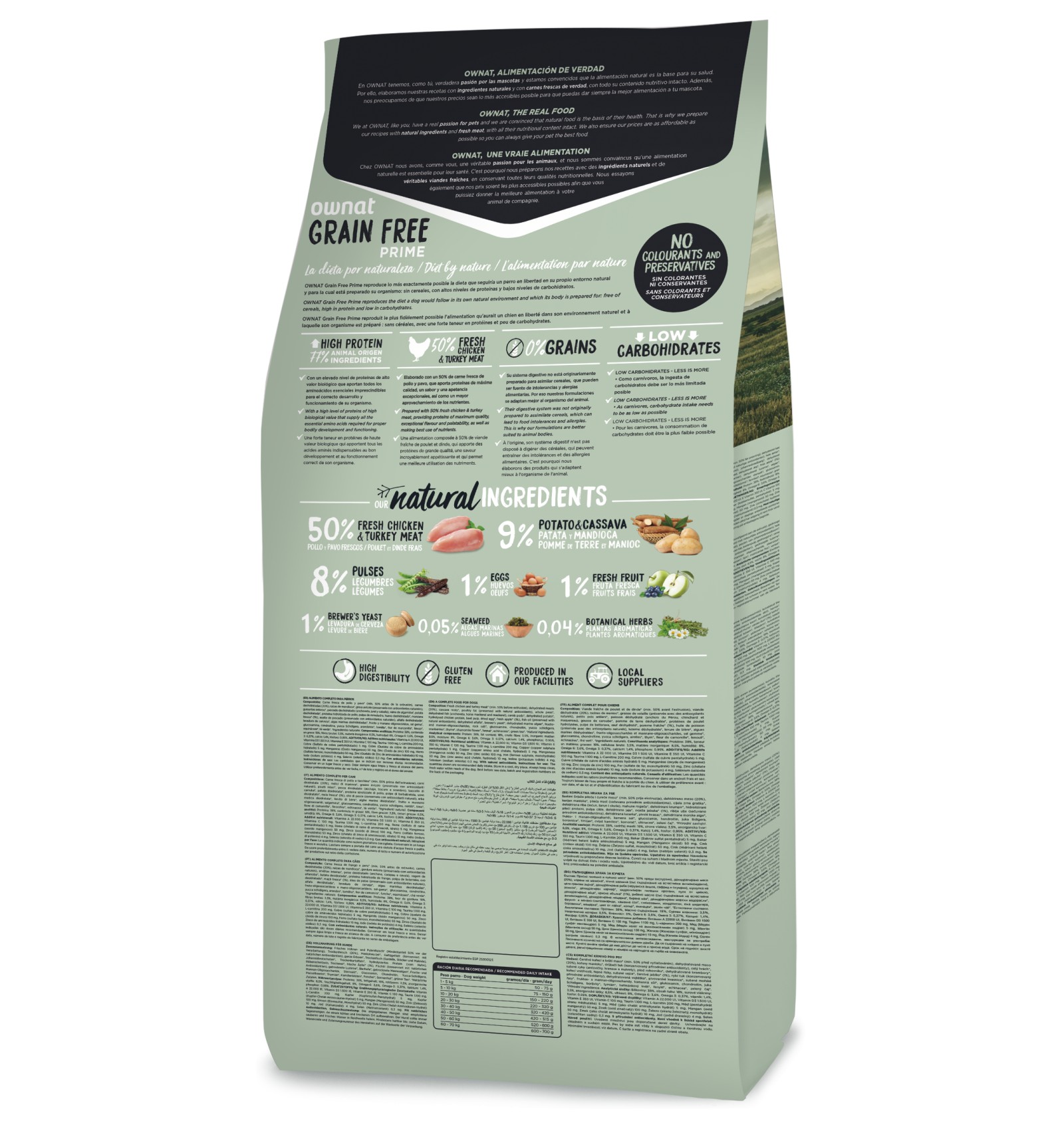 O sistema digestivo dos cães e dos gatos não está preparado para assimilar os cereais crus e, embora possa digerir os cereais cozidos, estes podem ser fonte de intolerâncias e alergias alimentares. Por isso prescindimos totalmente dos cereais nas nossas formulações Grain Free.