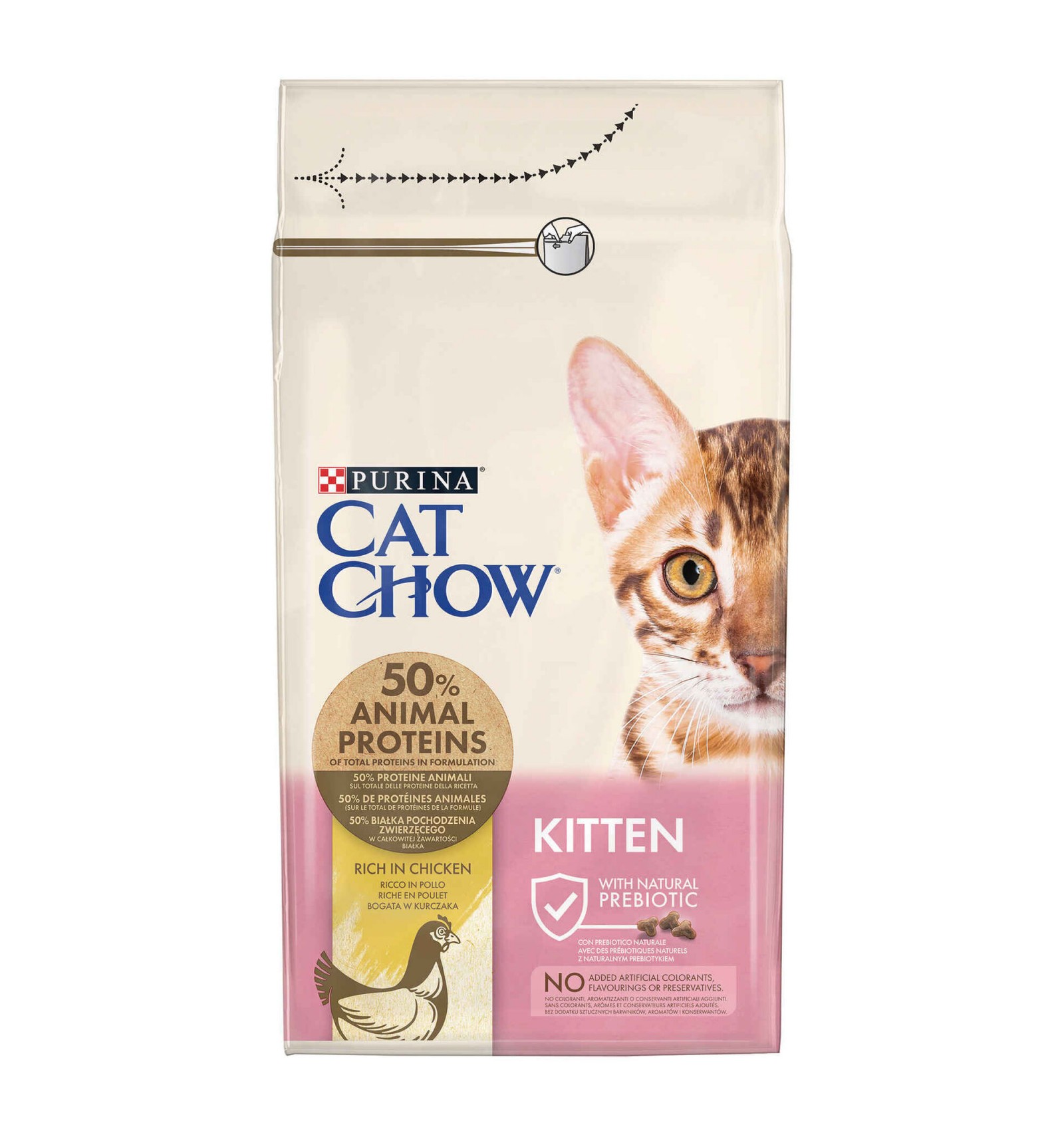 Purina® CAT CHOW® Kitten, é um alimento completo para gatinhos que inclui Naturium™ uma combinação específica de fibras de fontes naturais assim como um prebiótico natural que ajuda a promover a digestão saudável, para que o seu gatinho retire o melhor do seu alimento.