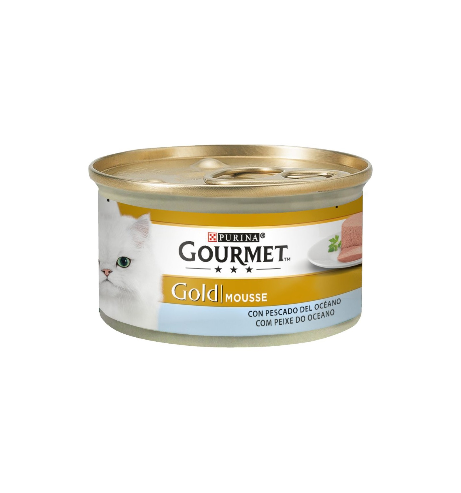 GOURMET Gold Mousse Com Peixe do Oceano. Suave Mousse, cuidadosamente preparadas para oferecer ao seu gato o prazer de uma delicada e suave sensação.