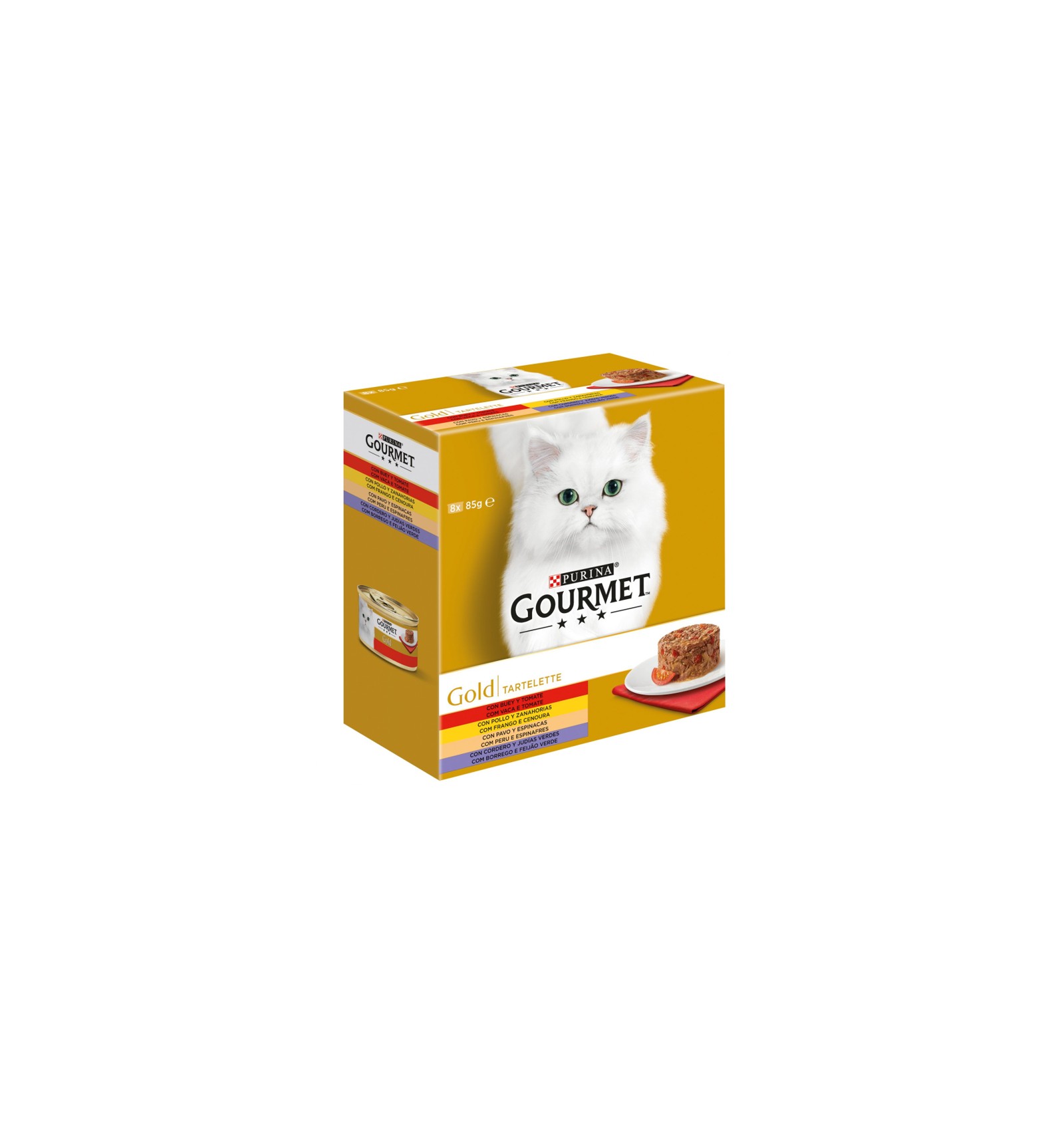 GOURMETGold Tartelette contém pedacinhos delicadamente cortados com carne de vaca, frango ou outros sabores requintados e um toque de legumes selecionados, cuidadosamente temperados com apenas um pouco de molho. Tudo se junta numa deliciosa tartelette para o seu gato saborear cada pedacinho.