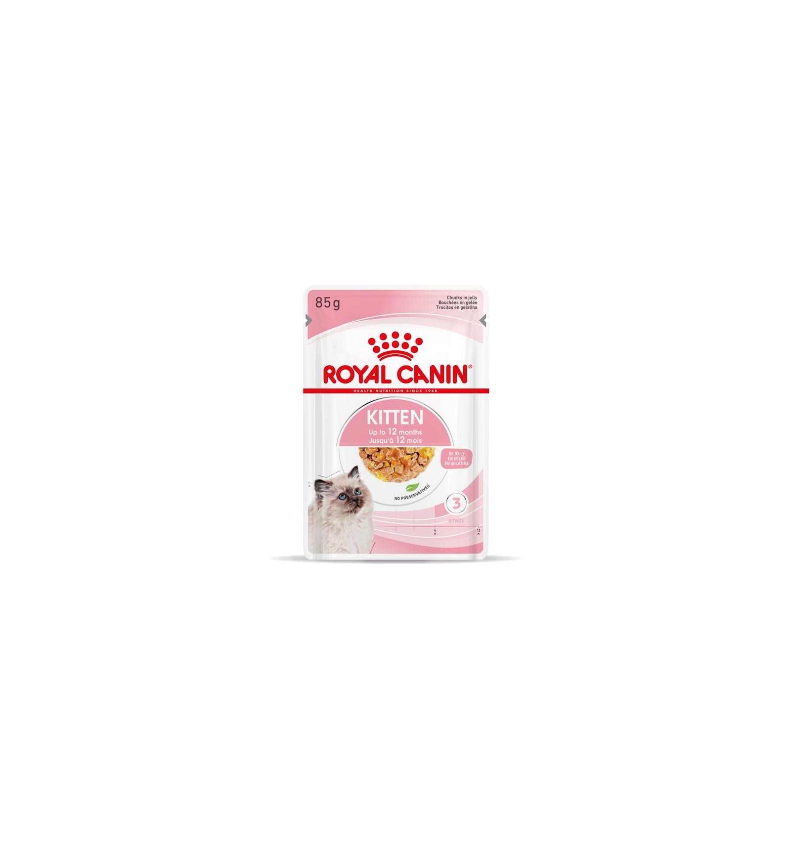 O ROYAL CANIN® Kitten em geleia é especialmente formulado para apoiar as necessidades nutricionais dos gatinhos na "fase de consolidação" do seu crescimento. Esta fórmula é adequada para gatinhos de 4 a 12 meses de idade, dado que vivem um período de alterações físicas e comportamentais significativas.