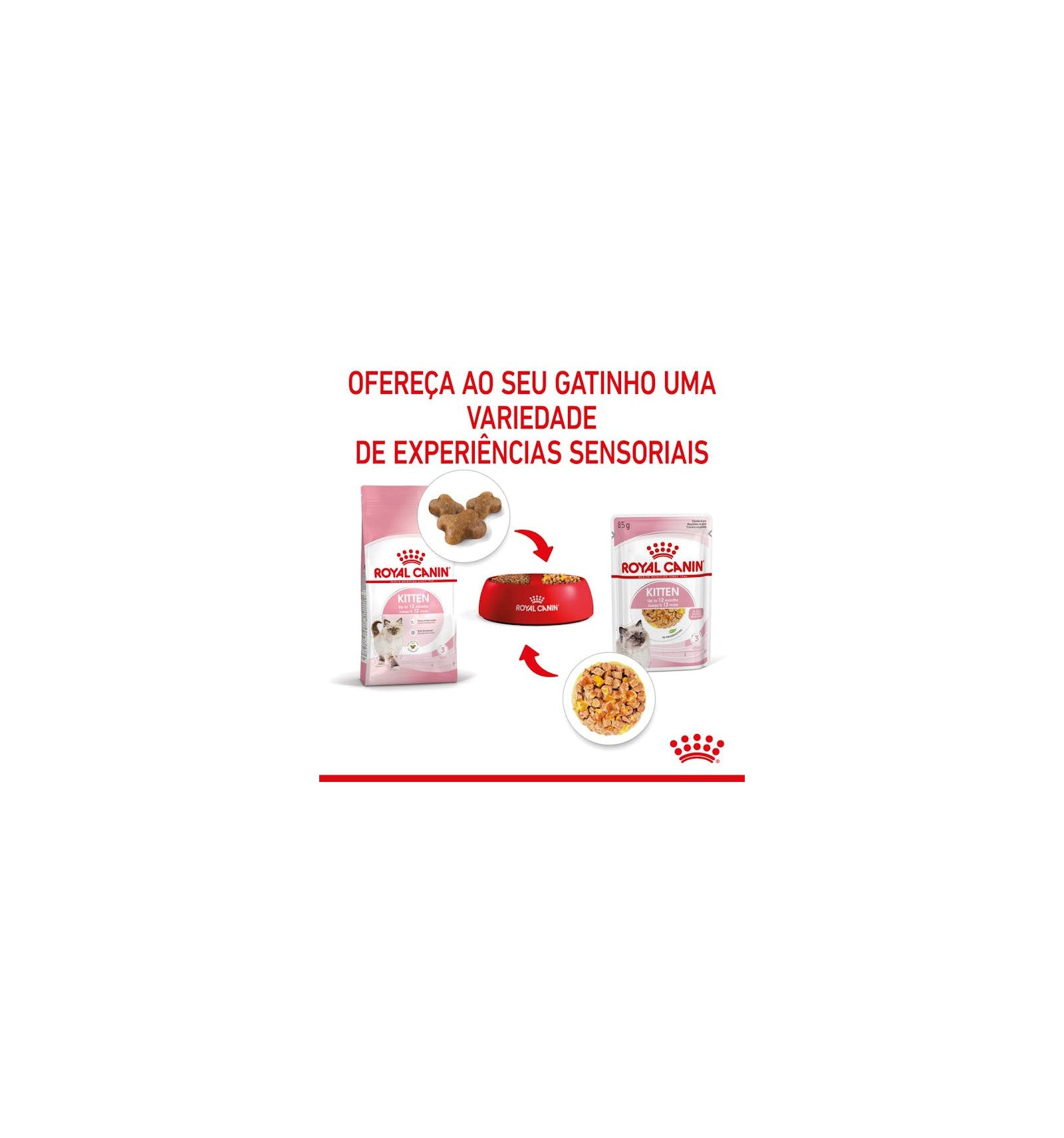 O ROYAL CANIN® Kitten em geleia foi desenvolvido para satisfazer o mais requintado paladar felino. Este alimento húmido proporciona ao seu gatinho uma experiência sensorial positiva, promove uma hidratação saudável e é perfeito para a alimentação mista com o alimento seco ROYAL CANIN® Kitten.