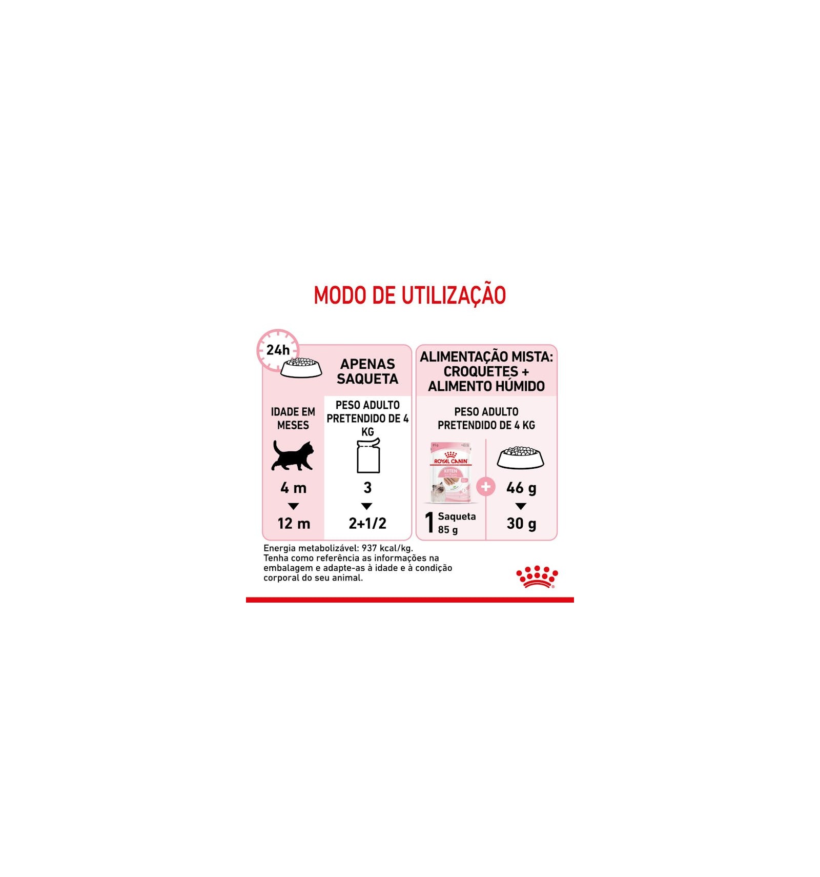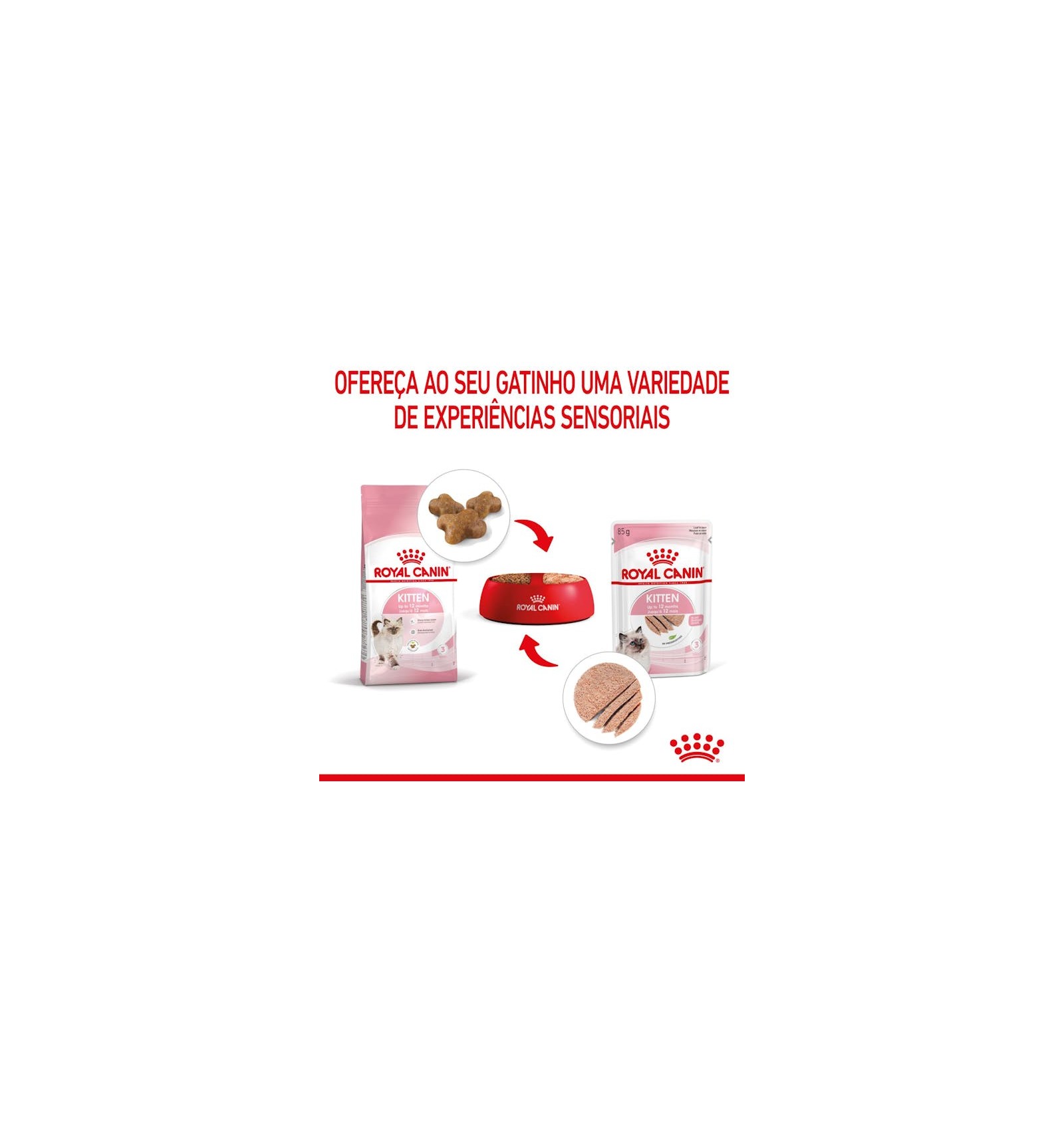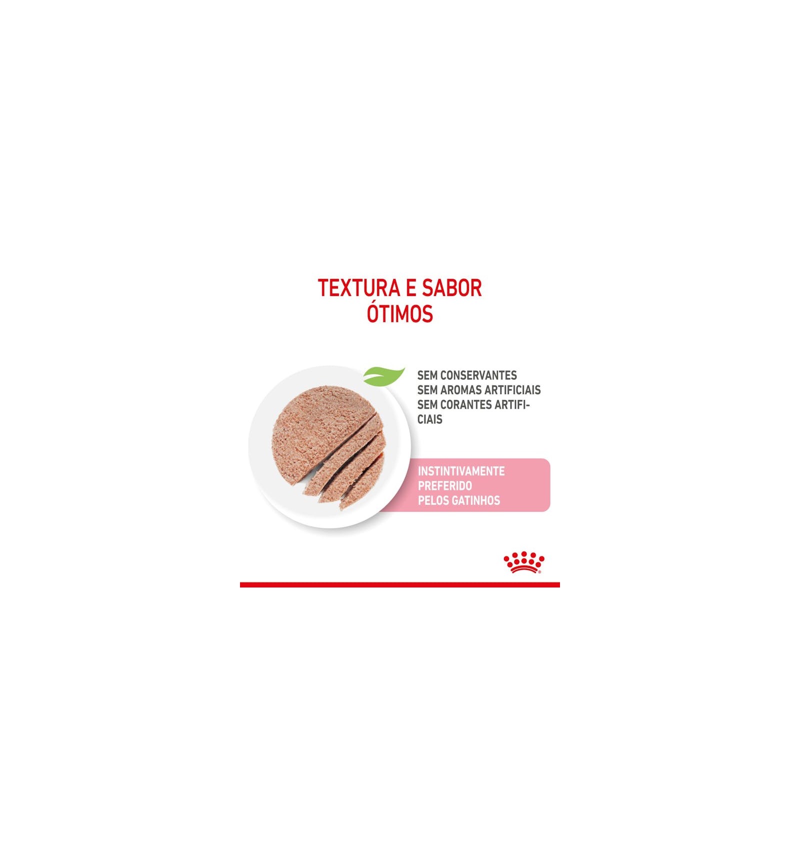 O ROYAL CANIN® Kitten patê foi desenvolvido para satisfazer o mais requintado paladar felino. Este alimento húmido proporciona ao seu gatinho uma experiência sensorial positiva, promove uma hidratação saudável e é perfeito para a alimentação mista com o alimento seco ROYAL CANIN® Kitten.