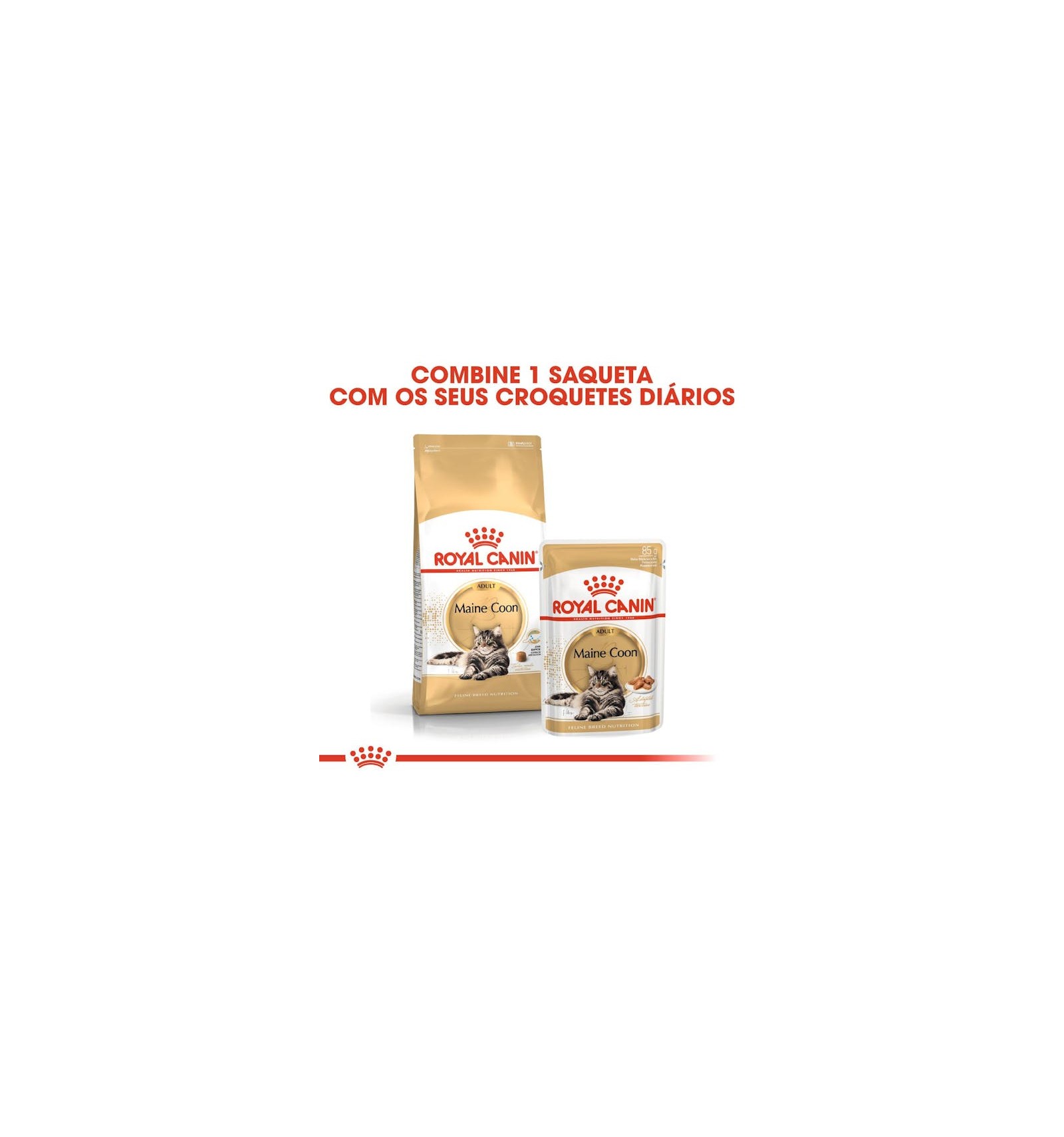 Para satisfazer as preferências individuais de cada gato, o ROYAL CANIN® Maine Coon Adult em molho também está disponível sob a forma de alimento seco com croquetes crocantes e saborosos. Se está a pensar em mix-feeding, basta seguir as nossas diretrizes de alimentação para garantir que o seu gato recebe a quantidade precisa de alimento seco e de alimento húmido para um máximo benefício.