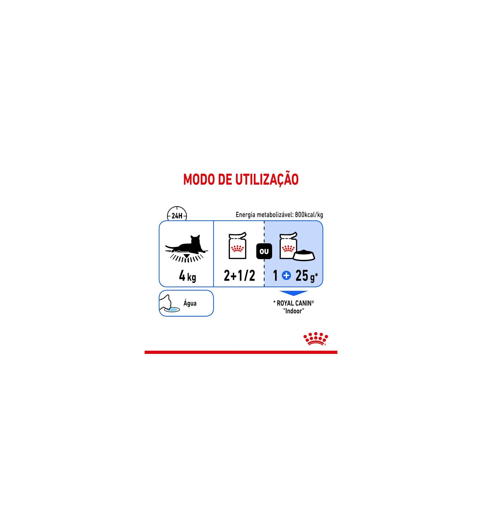 | Peso do gato | Alimentação húmida (saqueta) | Alimentação mista: Seco + Húmido |