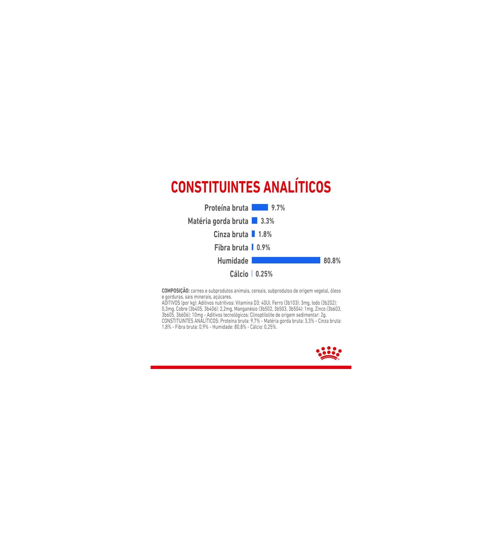 ADITIVOS (por kg): Aditivos nutritivos: Vitamina D3: 50 UI, Ferro (3b103): 2 mg, Iodo (3b202): 0,28 mg, Cobre (3b405, 3b406): 2,2 mg, Manganês (3b502, 3b503, 3b504): 0,8 mg, Zinco (3b603, 3b605, 3b606): 8 mg - Aditivos tecnológicos: Clinoptilolite de origem sedimentar: 2 g.