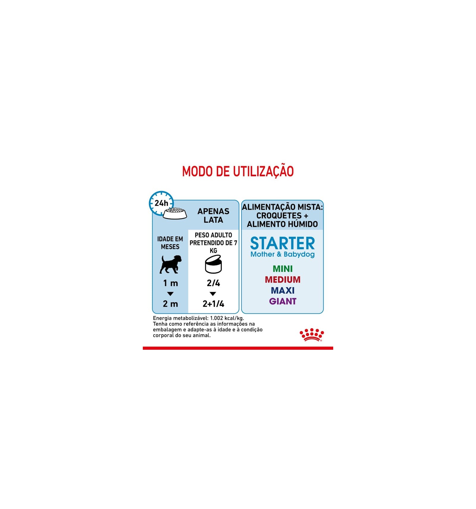 O ROYAL CANIN® Starter Mousse Mother & Babydog é especialmente formulado para satisfazer as necessidades nutricionais de cadelas gestantes ou lactantes e cachorros em período de desmame até à idade de 2 meses.