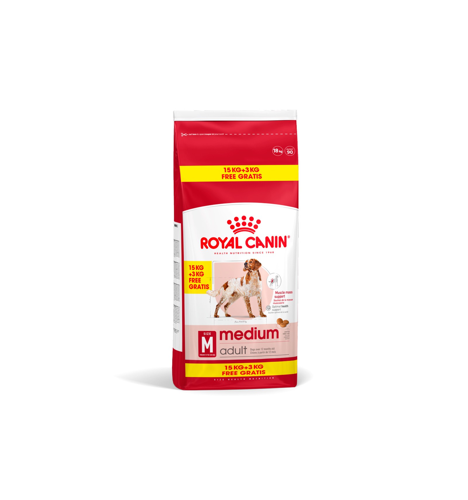 O ROYAL CANIN® Medium Adult é um alimento nutricionalmente completo e equilibrado especialmente desenvolvido para satisfazer as necessidades específicas do seu cão de raça média e apoiá-lo ao longo da sua vida adulta. Este alimento destina-se aos cães de raças médias que pesam entre 11 e 25 kg e que têm mais de 12 meses.