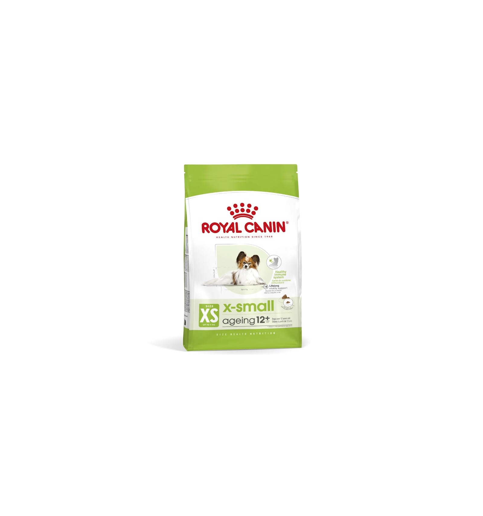 O ROYAL CANIN® X-Small Ageing 12+ destina-se aos cães de raças muito pequenas que pesam até 4 kg e que têm mais de 12 anos. É um alimento nutricionalmente completo e equilibrada especialmente desenvolvido para satisfazer as necessidades específicas do seu cão de raça muito pequena e apoiá-lo ao longo dos seus anos sénior.