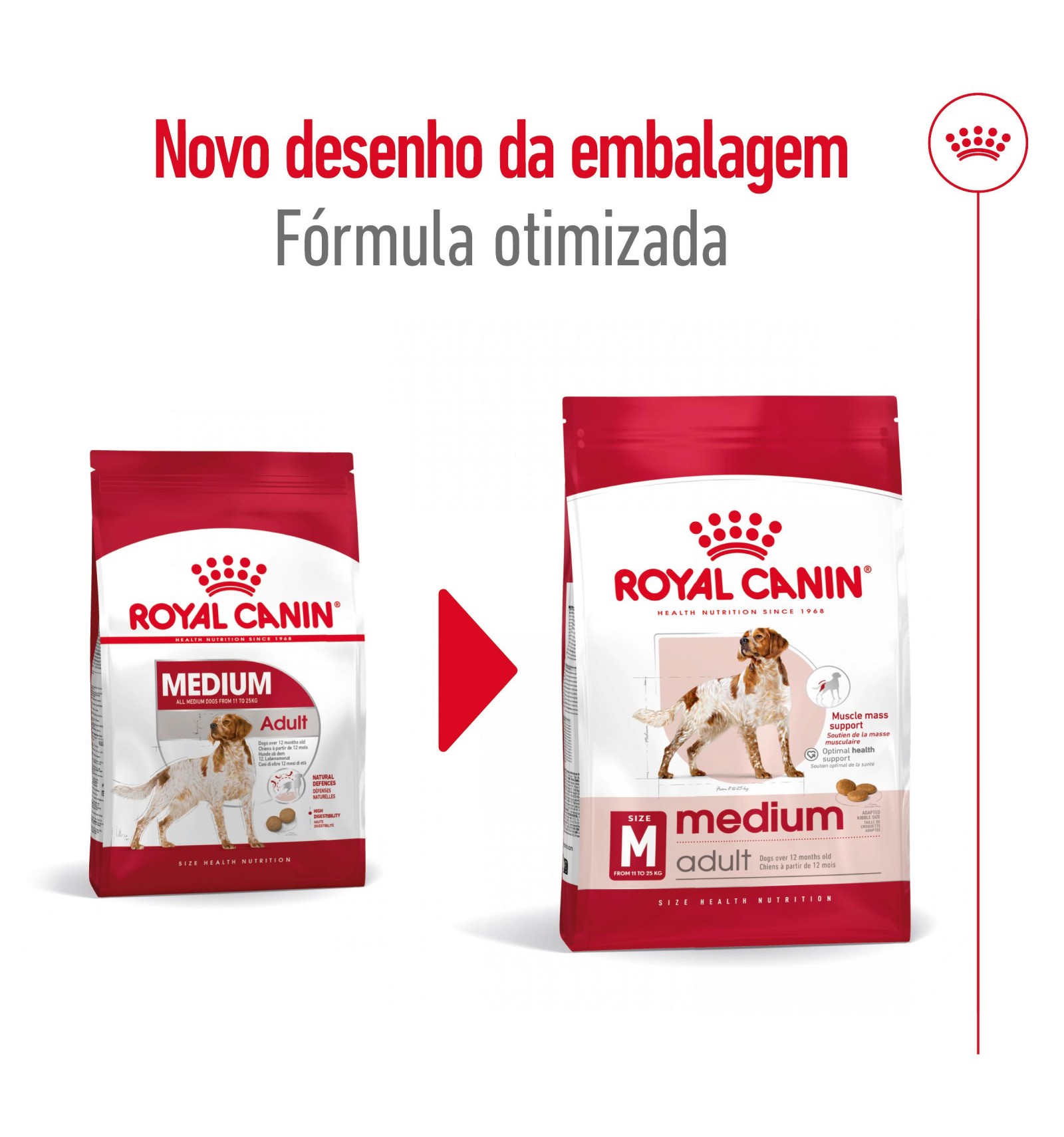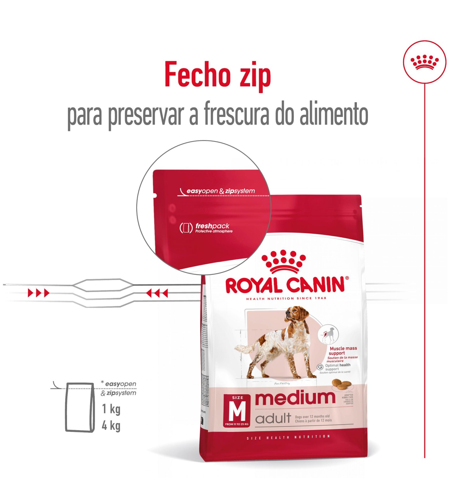 O ROYAL CANIN® Medium Adult é um alimento nutricionalmente completo e equilibrado especialmente desenvolvido para satisfazer as necessidades específicas do seu cão de raça média e apoiá-lo ao longo da sua vida adulta. Este alimento destina-se aos cães de raças médias que pesam entre 11 e 25 kg e que têm mais de 12 meses.