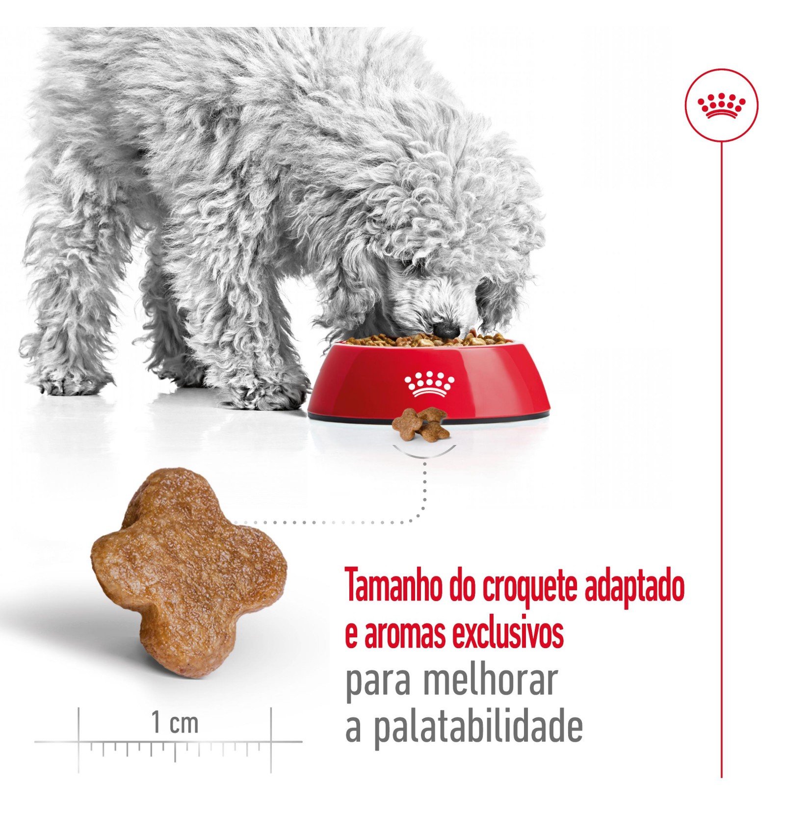 Alguns cães de pequeno porte têm tendência a revelar um apetite caprichoso. Se é o caso do seu cão de pequeno porte, pode ter a certeza de que o ROYAL CANIN® Mini Adult 8+ foi formulado atendendo a uma exclusiva seleção de sabores.