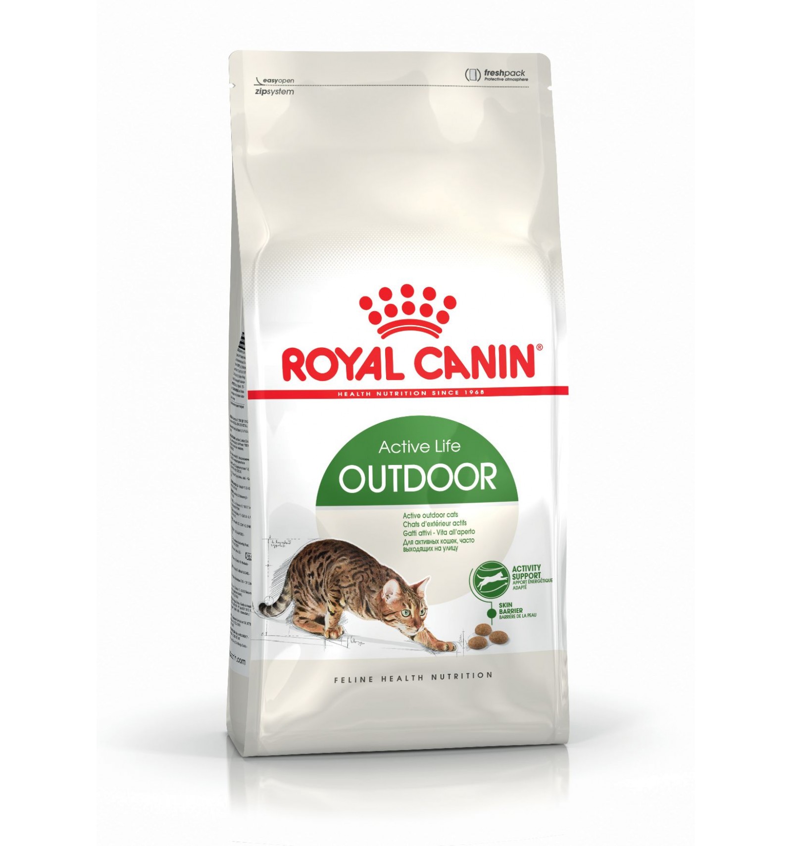 Suporte da atividade:Fornece um aporte calórico ótimo, pois tem um alto conteúdo energético que atende ás necessidades dos gatos ativos. Reforça as defesas naturais e ajuda a reforçar a saúde articular dos gatos com atividade física intensa e maior exposição aos riscos do meio ambiente.