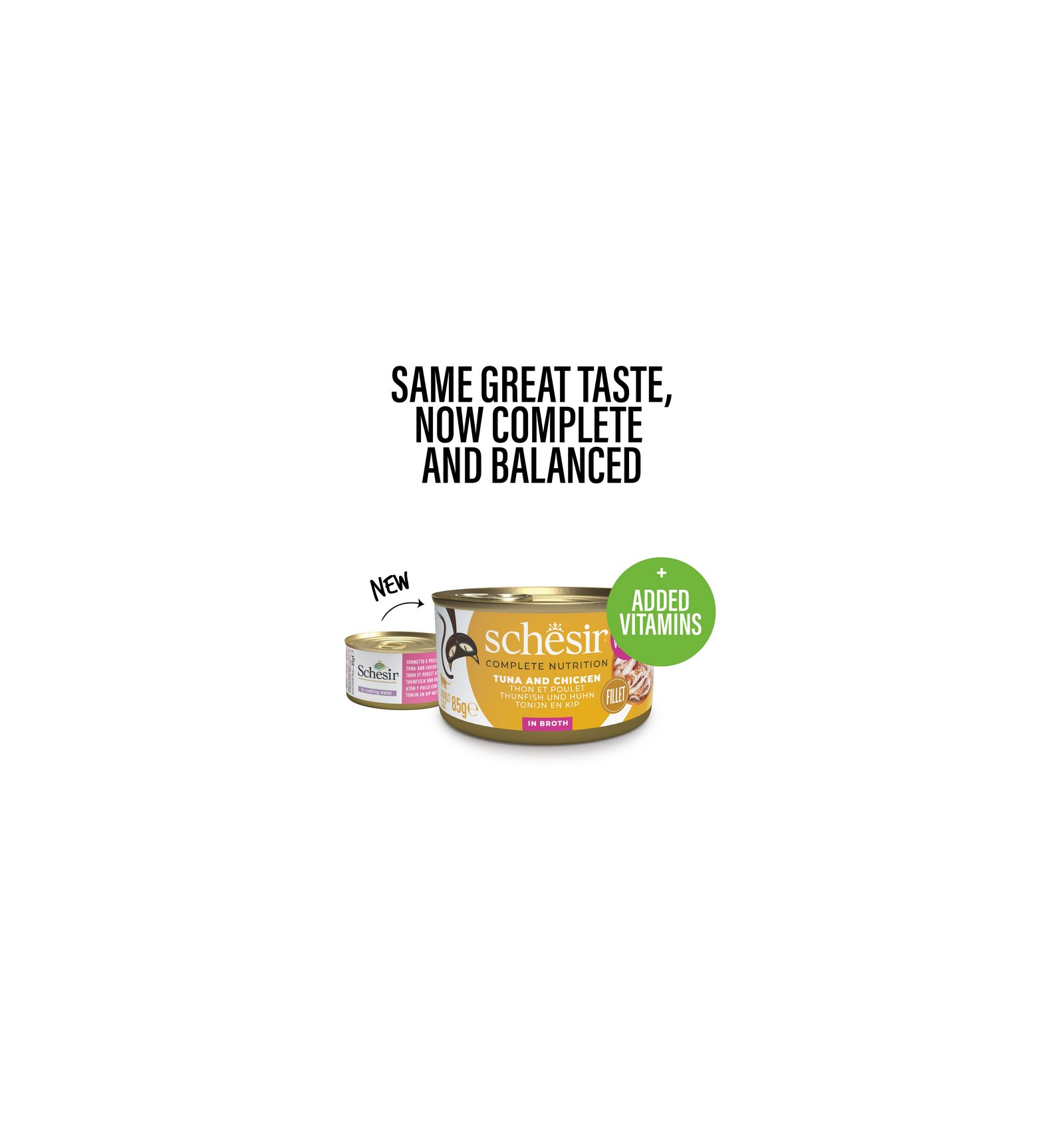 Schesir eleva a nutrição natural com alimentos úmidos para gatos que combinam ingredientes de alta qualidade com um perfil completo e equilibrado.