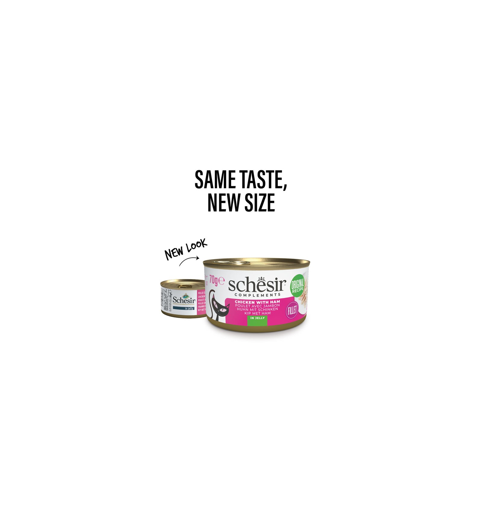 A gama Schesir in Jelly é a escolha certa para mimar o seu gato e completar a sua refeição com algo saboroso. Os pedaços suculentos de carne são envoltos na geleia macia, criando uma combinação de sabores e consistências que farão com que seu gato ronrone com alegria. Esta delicadeza também é cuidadosamente formulada para satisfazer até mesmo gatos idosos que têm dificuldade em engolir.