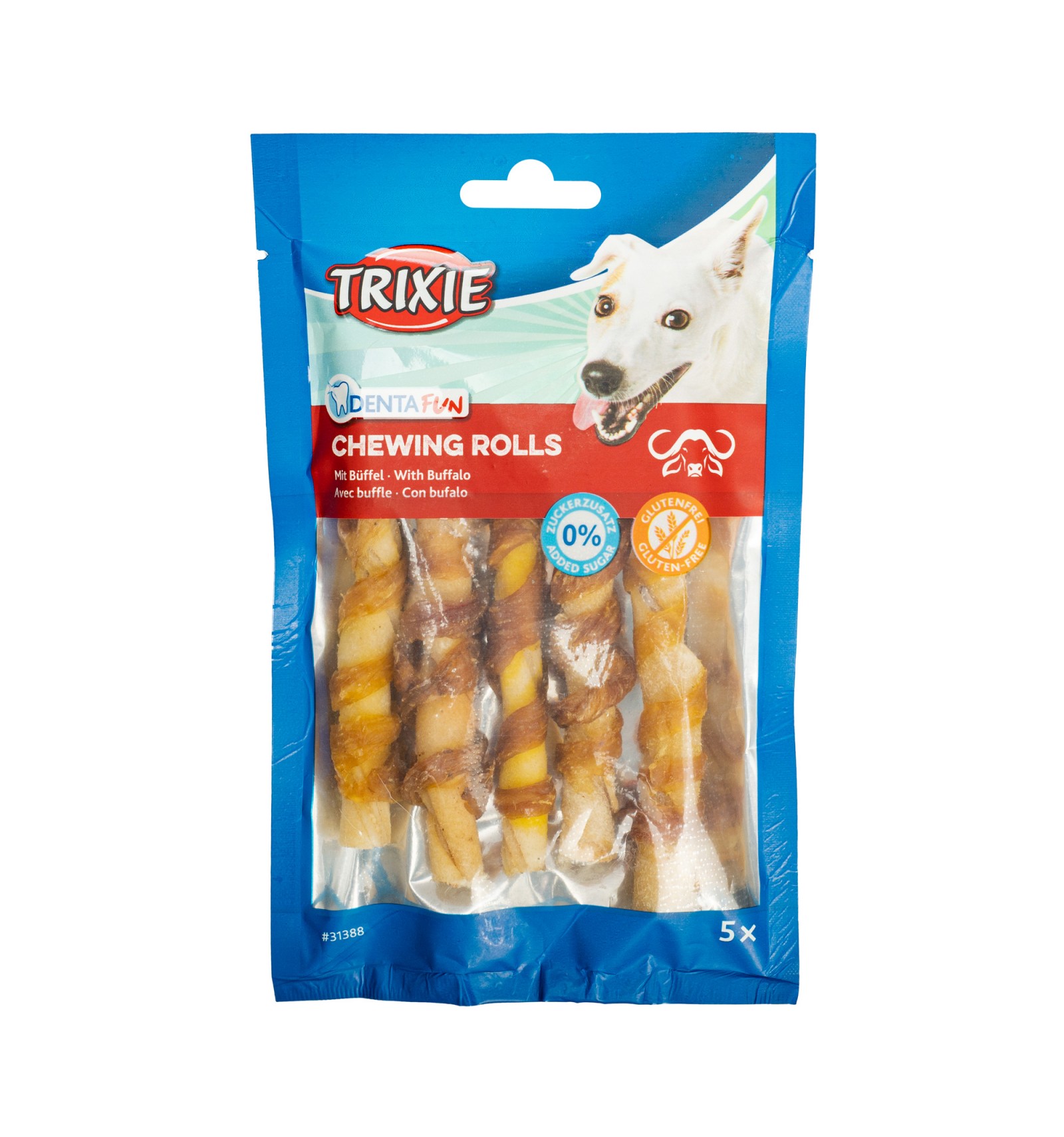 snacks Sticks com Búfalo são ideais para dar ao animal entre as refeições. São produzidos com couro cru grosso para um longo período de mastigação, envoltos com uma deliciosa carne de búfalo. Estes snacks não contêm glúten, pelo que ajudam a reduzir as sensibilidades alimentares do animal.