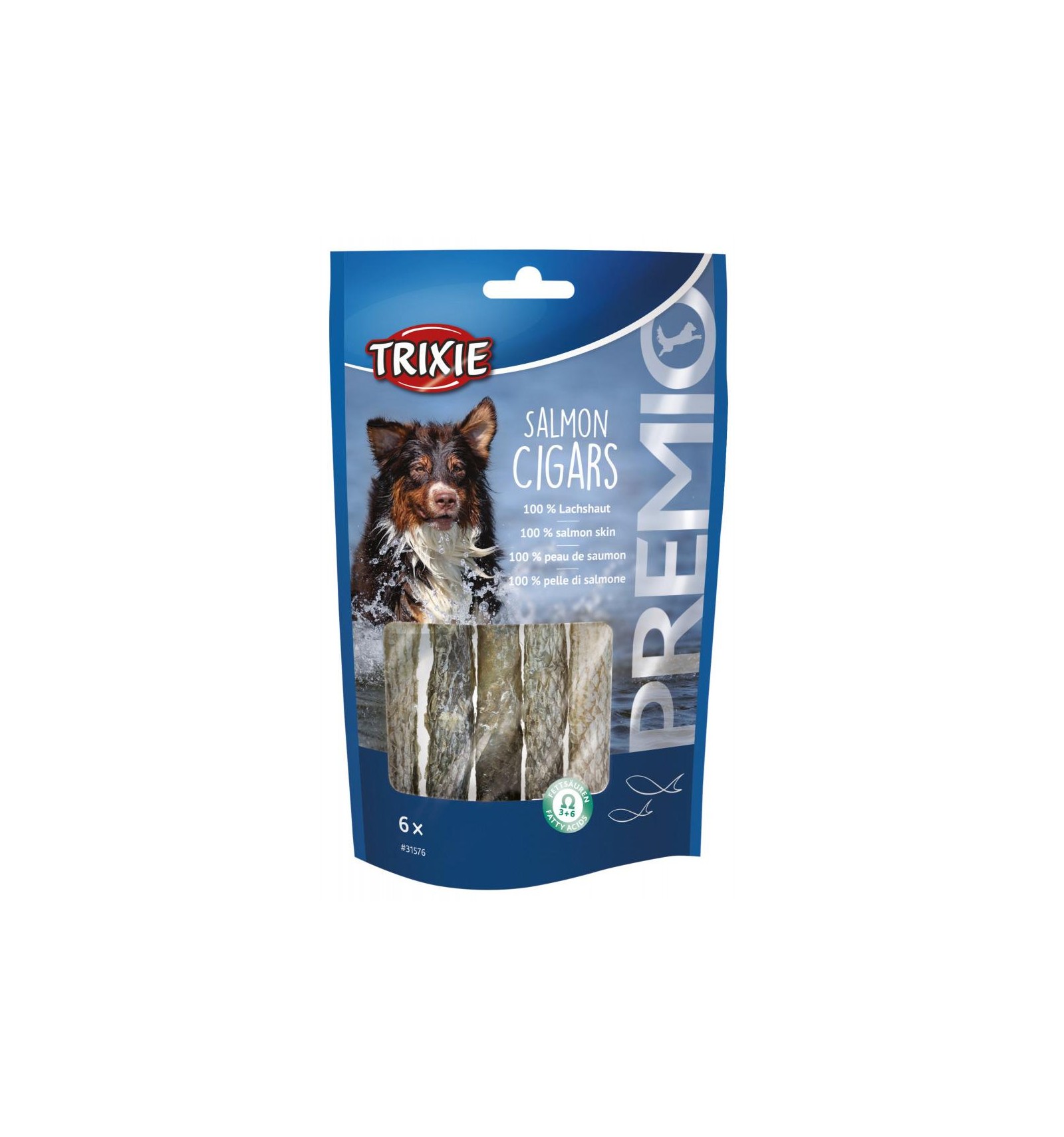 Os snacks Trixie Premio salmon cigars são ideais para dar ao animal entre as refeições. Feitos com 100% de salmão, ricos em ómega 3 e 6, contribuem para uma pele e pelo saudáveis.