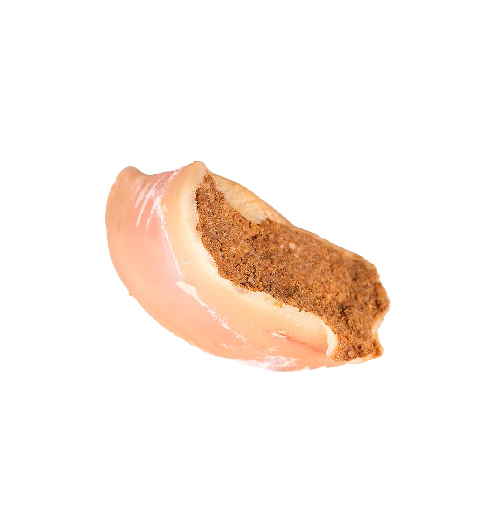 cascos de vitela, carne de vaca, farinha de ossos, gorduras animais (vaca), gorduras vegetais (óleo de girassol e óleo de palma)