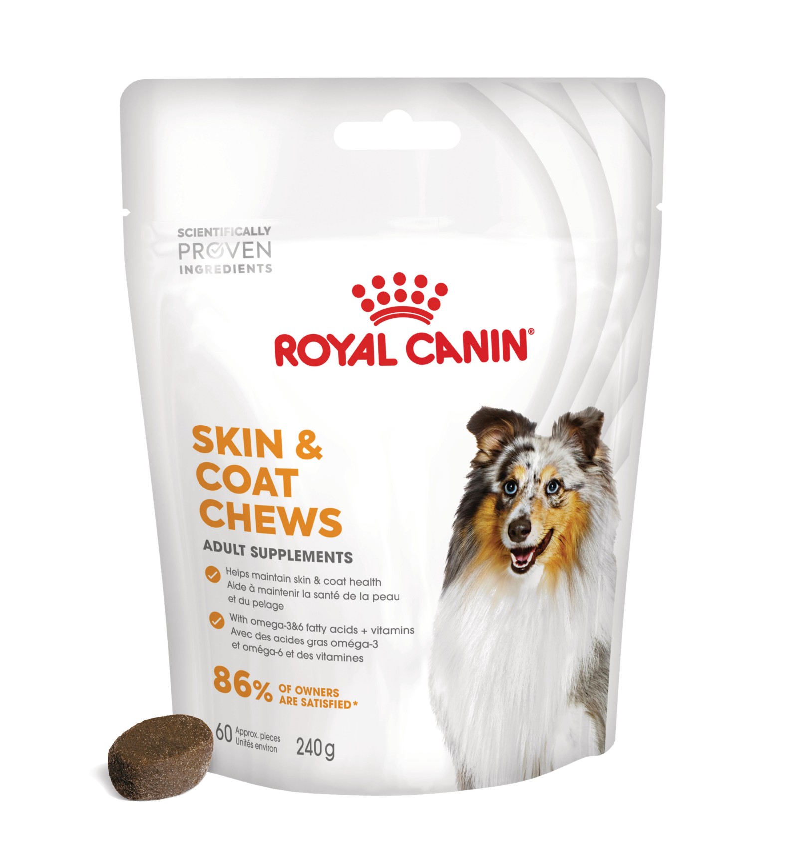 Formulados por médicos veterinários, aprovados pelos cãesDestinados aos cães adultos, os ROYAL CANIN® SKIN & COAT CHEWS ADULT SUPPLEMENTS são especialmente formulados com uma combinação de ingredientes cientificamente comprovados, com base em mais de 50 anos de investigação e observação em nutrição canina. Desenvolvidos por especialistas, estes suplementos nutritivos são concebidos para satisfazer as necessidades evolutivas do seu cão e ajudar a manter a sua saúde de dentro para fora.